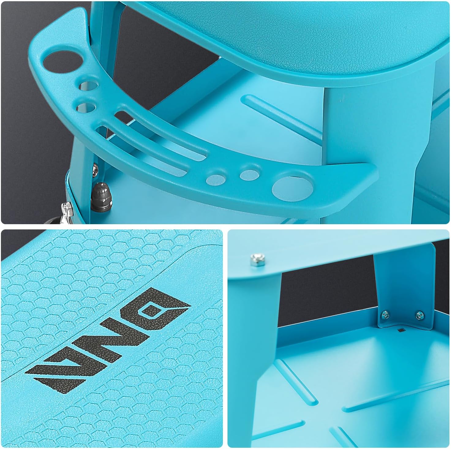 DNA MOTORING Removable Rolling Garage Stool with Seat Cushion & Tool Tray Plate, 300lbs Max Weight Capacity, Blue, TOOLS-00479