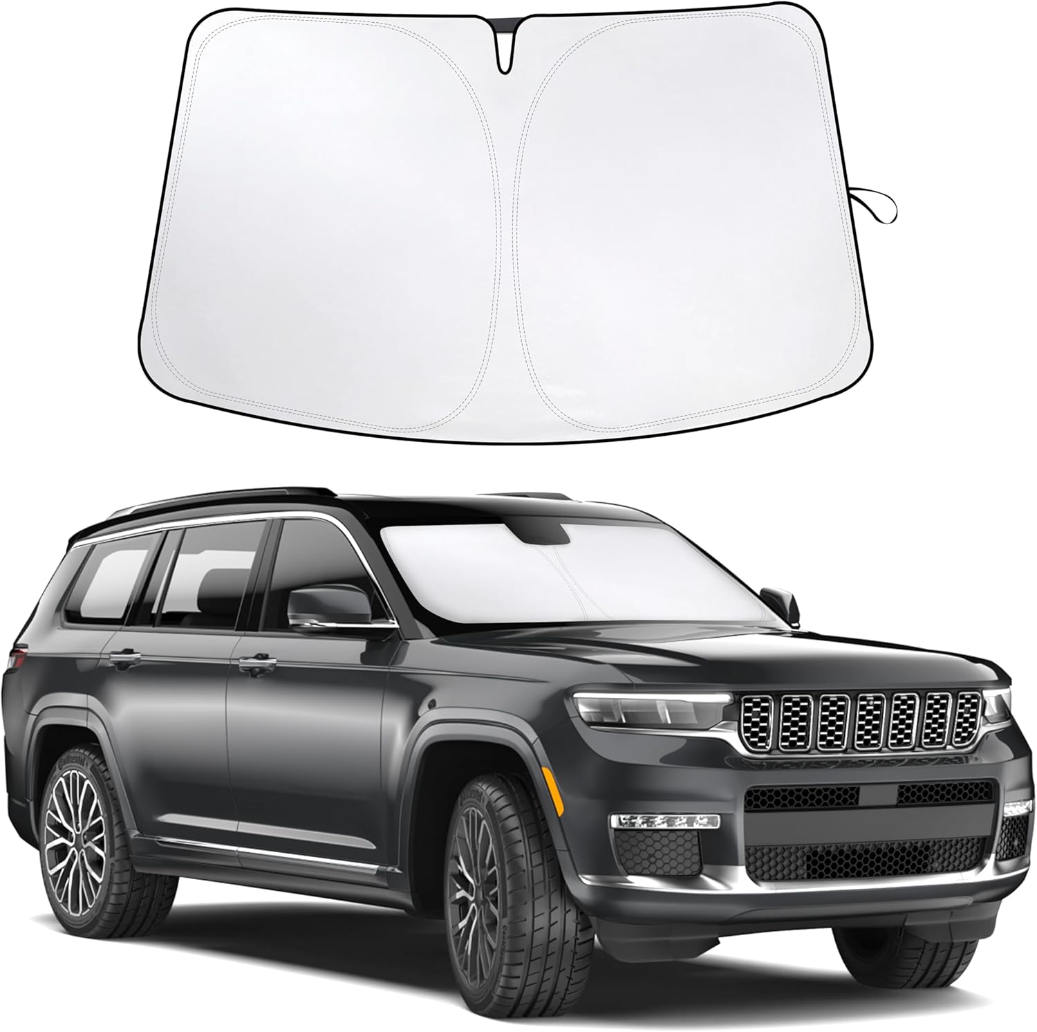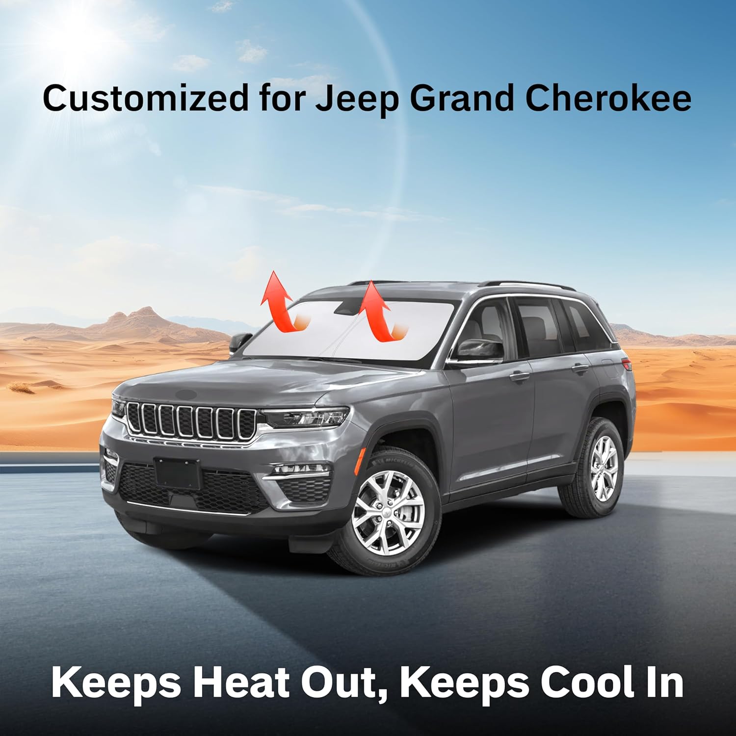 - Custom-Fit Design: Designed for a precise fit, this Jeep Grand Cherokee 2011-2025 (Not for Grand Cherokee L & Jeep Cherokee) windshield sunshade ensures maximum coverage and protection against the sun’s damaging rays.