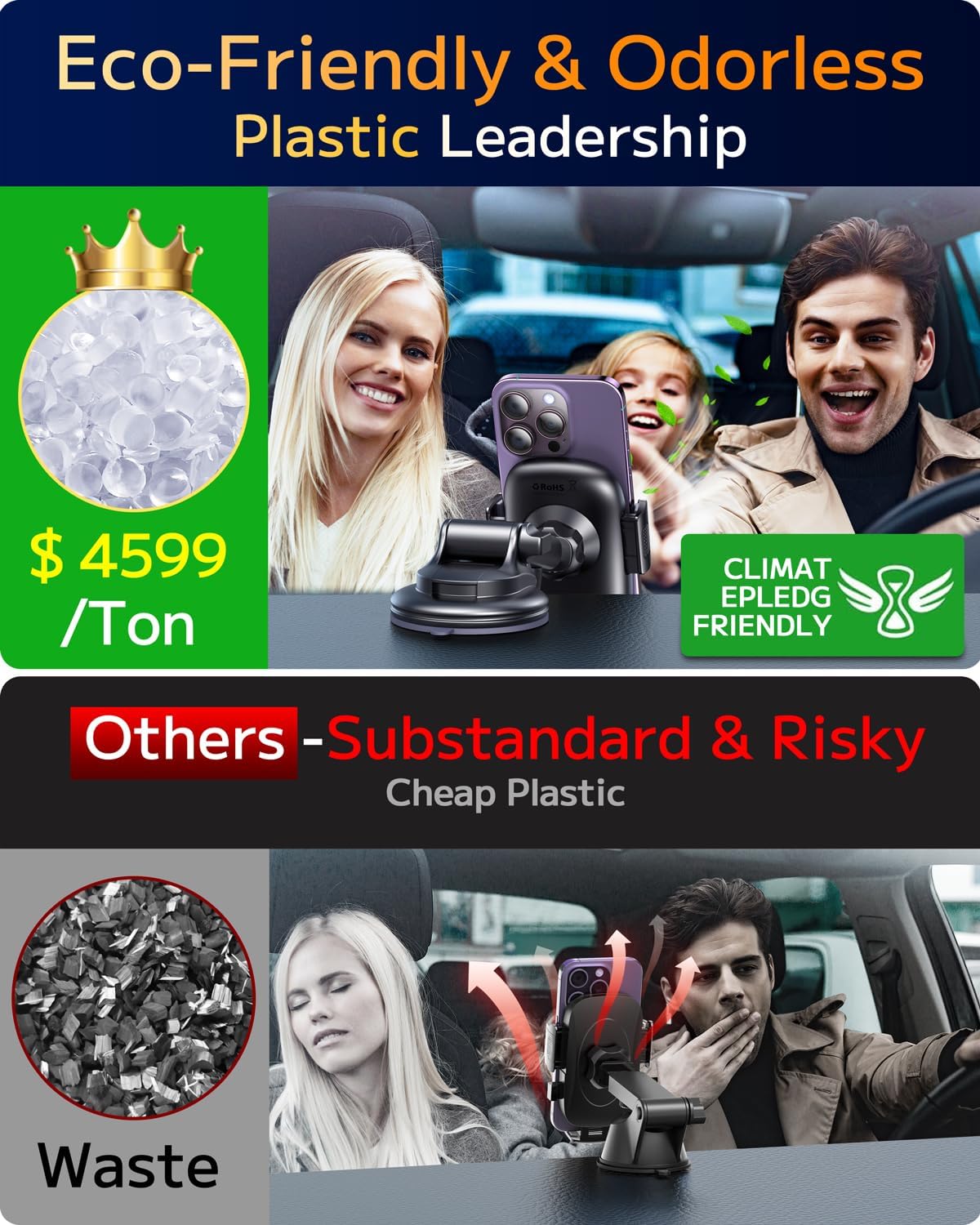 - Adhesive Suction Cup: Cell phone car mount with upgraded super sticky suction and double lock design, which doesn't come off even on bumpy roads. An additional 3M dashboard pad provides a smooth surface, and the car phone mount can be securely mounted anywhere you want. NOTE: Not recommended to use the dashboard pad for windshield mounting.