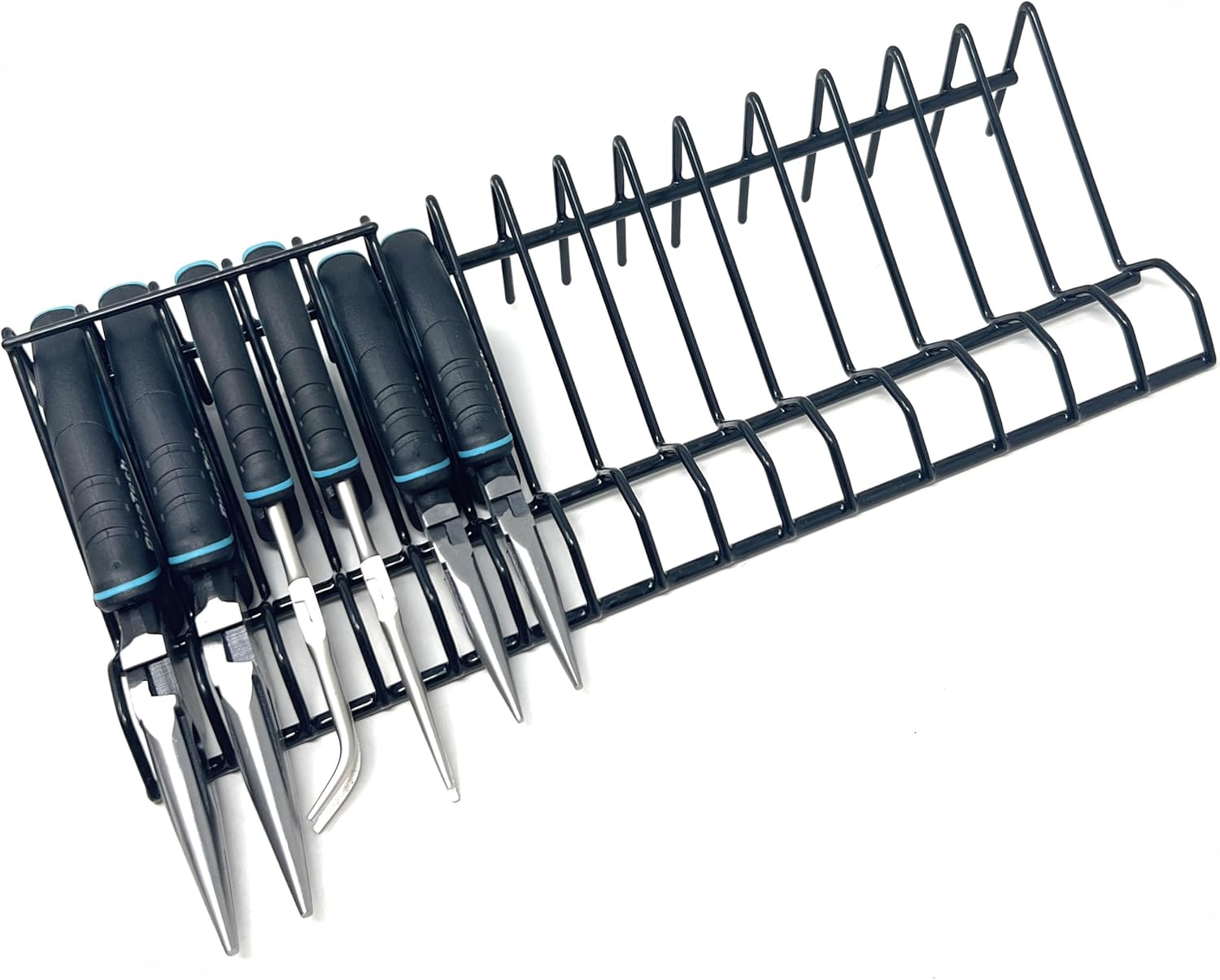 - SAFE PLIER DRAWER ORGANIZER – Made with premium quality metal wire coated with PVC and keeps the rack and tools in place. Pliers rack & organizer for tool drawer storage is durable and can withstand everyday wear/tear. Made in Taiwan.