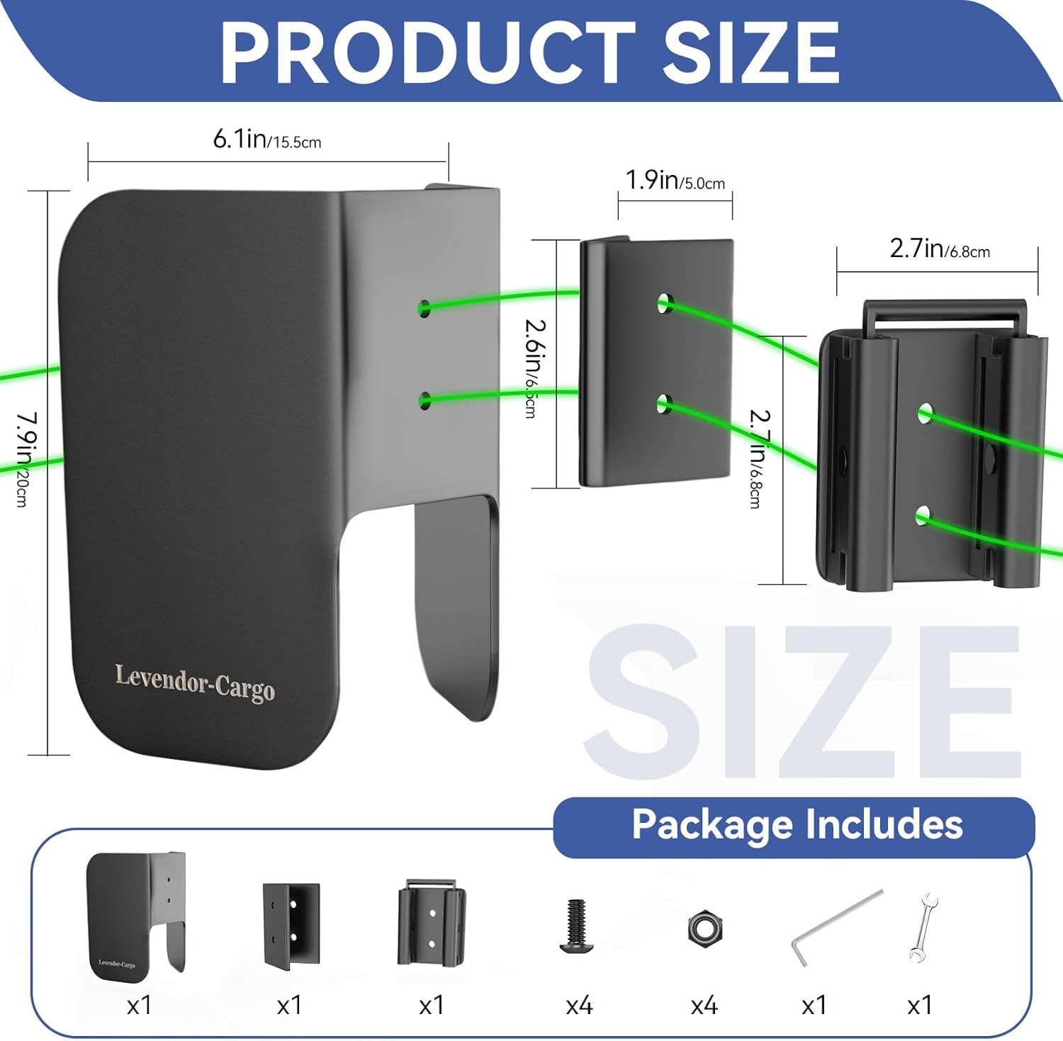 - Package Includes : 1 x E Track Wheel Chocks,1 x E-Track Mounts, 1 x 45 Degree Angle Adapter, 4 x Screw with Nuts,1 x Wrench, 1 x Hexagonal Wrench