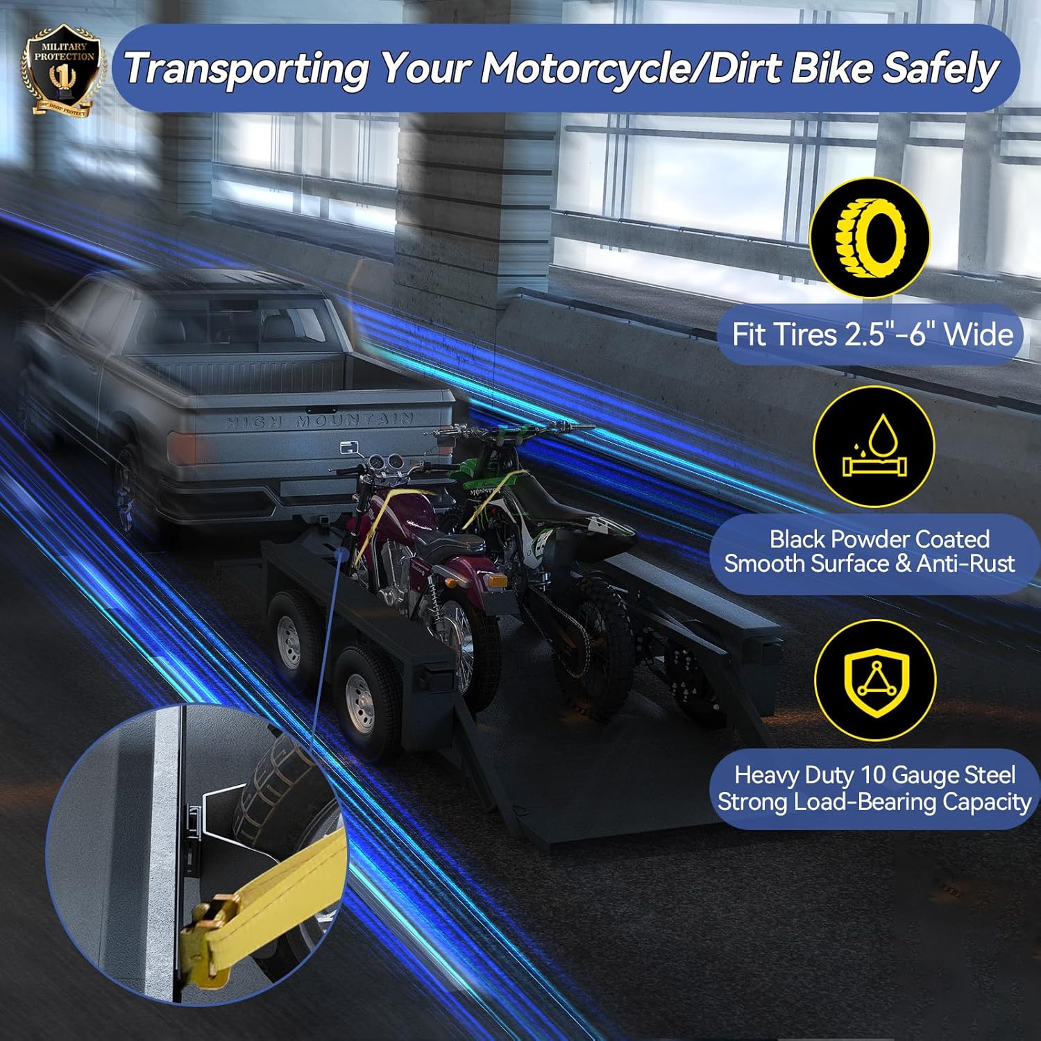 - Well Made : E track dirt bike wheel chock are constructed of industrial-grade 10 gauge steel with a black powder-coated finish for superior load-bearing capacity and rust resistance