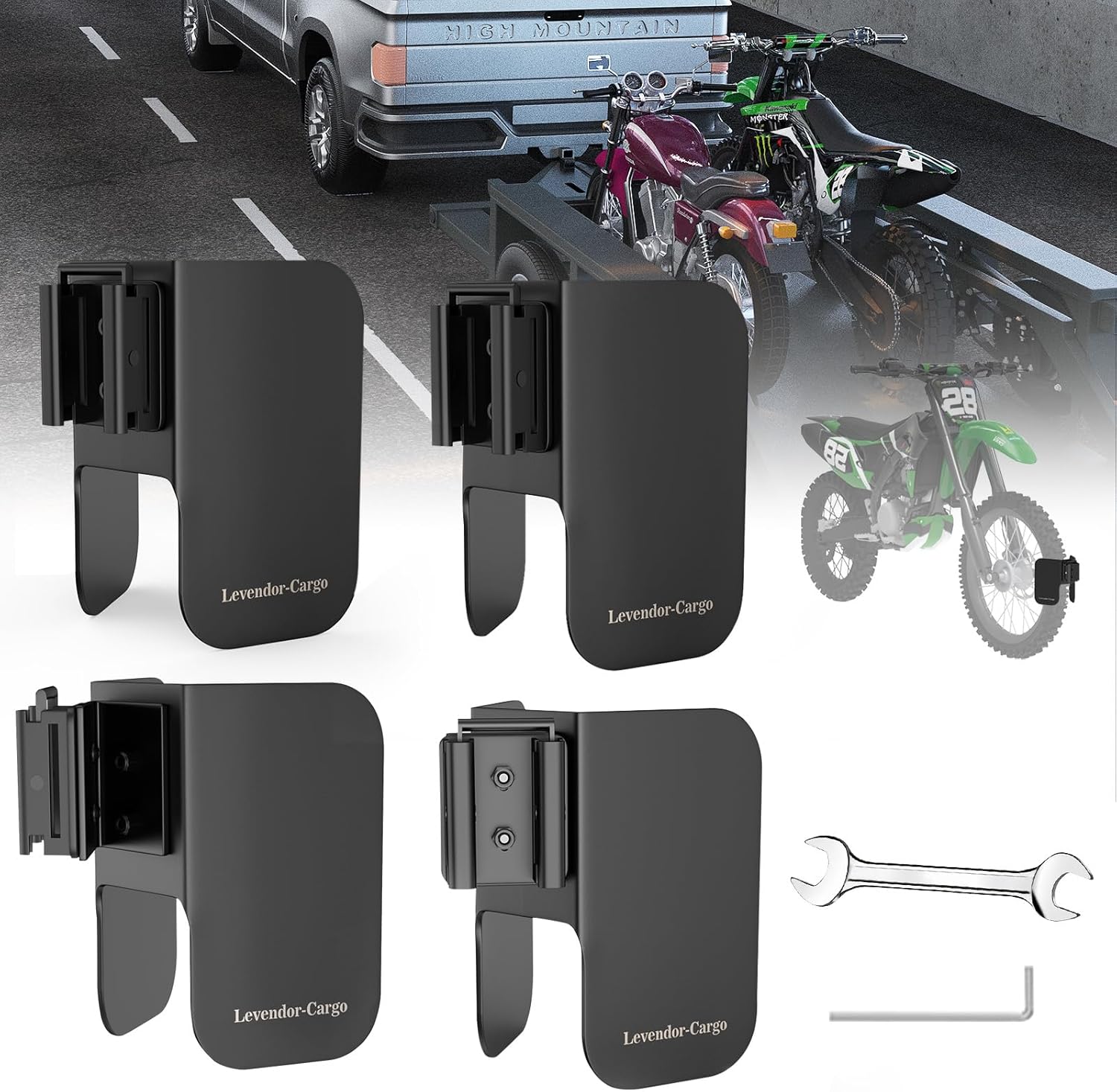 - You will received : 4 x E Track Wheel Chocks,4 x E-Track Mounts, 4 x 45 Degree Angle Adapter,16 x Screw with Nuts, 1 x Wrench, 1 x Hexagonal Wrench