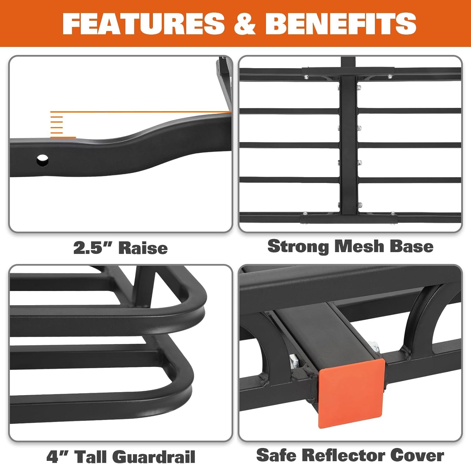 WEIZE Hitch Cargo Carrier Basket for SUV, Truck - 53x19 Inches, 500LB Capacity, with Waterproof Bag, Net Strap, Tightener, Powder Coated for Durability, Easy Installation, for Camping and Travel