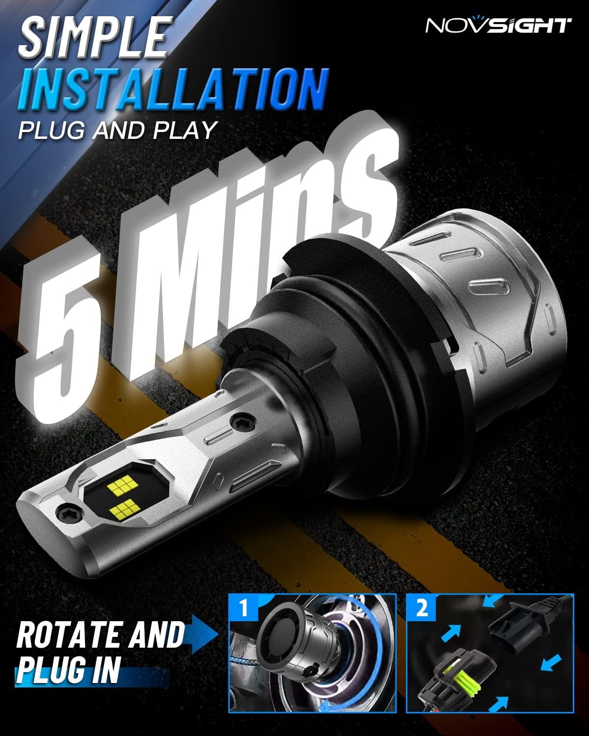 - Plug and Play in Minutes - Installation is a breeze! NOVSIGHT 9004 bulbs are designed to fit perfectly into your housing and factory sockets without any modifications. Get them installed in just 5 minutes, saving you time and effort