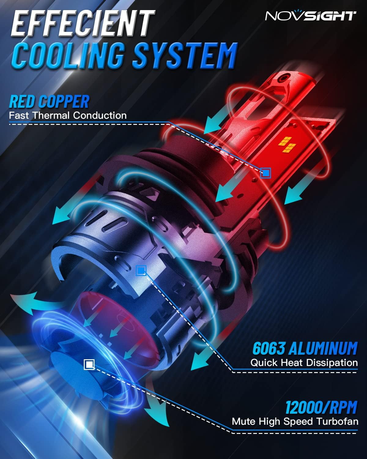 - No More Frequent Replacements - Enjoy long-lasting performance with built-in silent turbo fans and aviation-grade aluminum for optimal cooling. NOVSIGHT 9004 fog bulbs boast an impressive lifespan of up to 100,000 hours—no more constant replacements