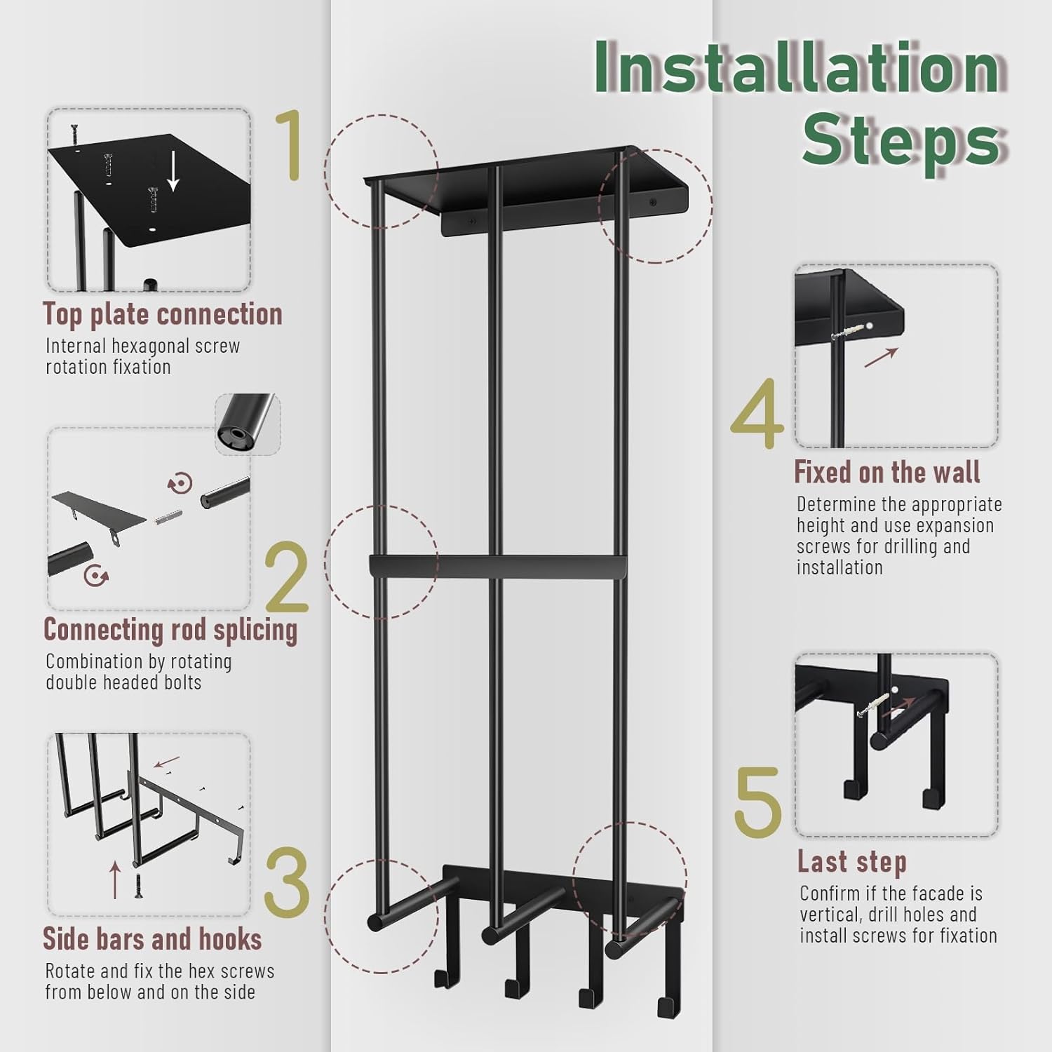 - Easy Installation: The garage camping chair storage frame comes with mounting hardware and instructions to make the installation process simple and straightforward. First, use the tools provided to assemble the garage's camping chair storage. Next, mark the installation location on the wall, drill 4 holes, insert the expansion screws, and finally secure the garage's camping chair rack storage to the wall with the screws.