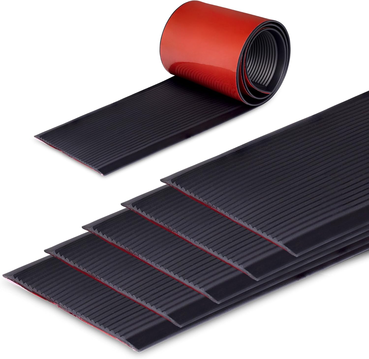 Rubber Bond 4x36in Anti Slip Stair Treads (5-Pack) - Waterproof Outdoor/Indoor Heavy Duty Non-Skid Tape for Stairs - Adhesive Rubber Grip Strips for Steps & Ramps - Black