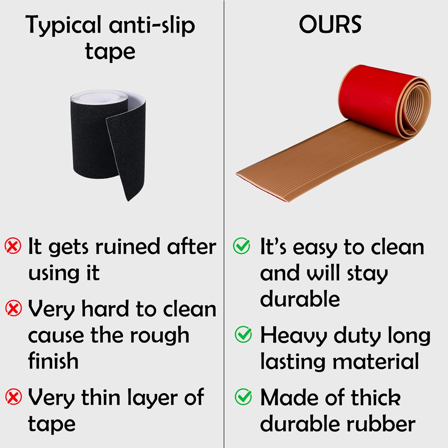 - DURABLE HEAVY-DUTY RUBBER MATERIAL – Our outdoor step treads grip tape is made of heavy-duty thick rubber material and is exceptionally durable. It prevents curling, tearing, wrinkling, or lifting even under the rigors of heavy foot traffic.
