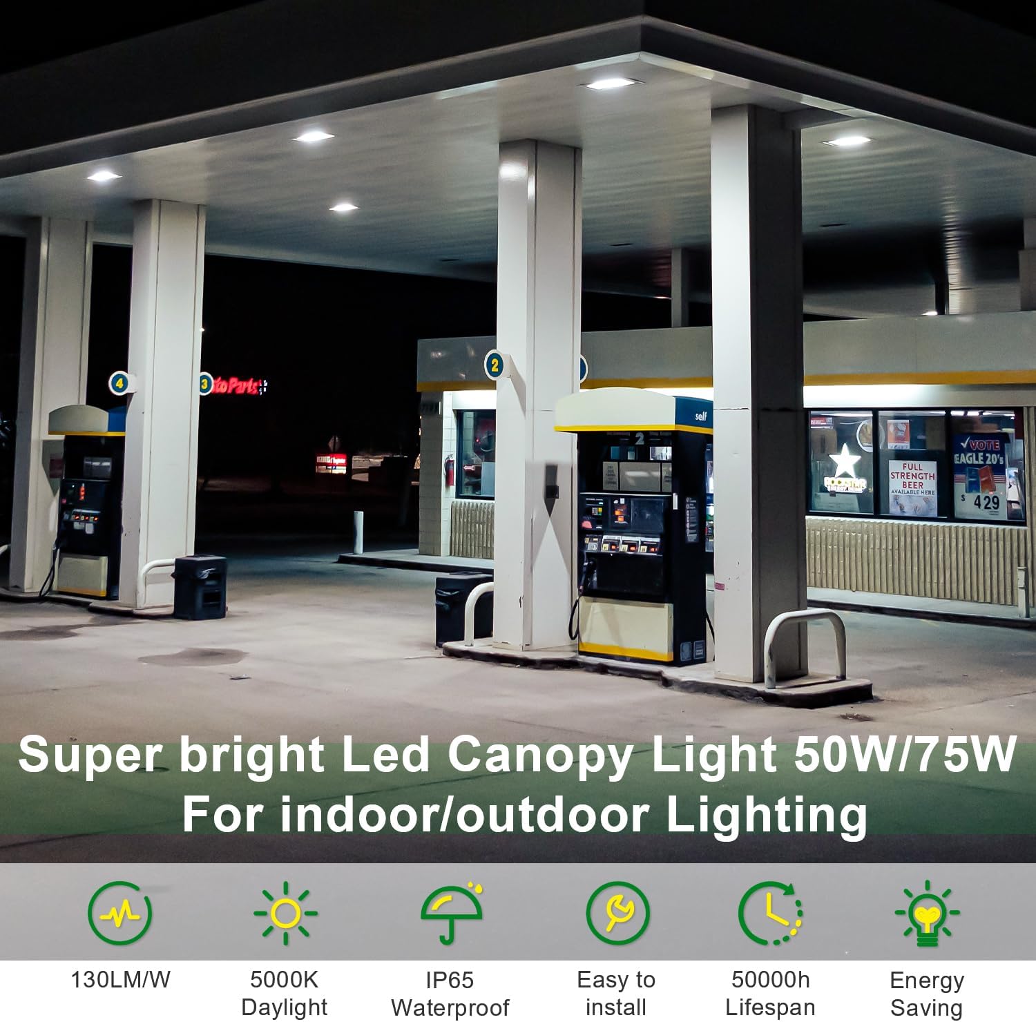 - đăEASY INSTALLATIONă- This LED canopy light fixture is designed with ease and safety of installation in mind. The mounting plate is equipped with a hanging ring to connect the fixture during ceiling mount installation, so itâll be even easier for you to make wire connections,Suitable for gas stations, parking lots, underground passages, warehouses, entrance passages, etc