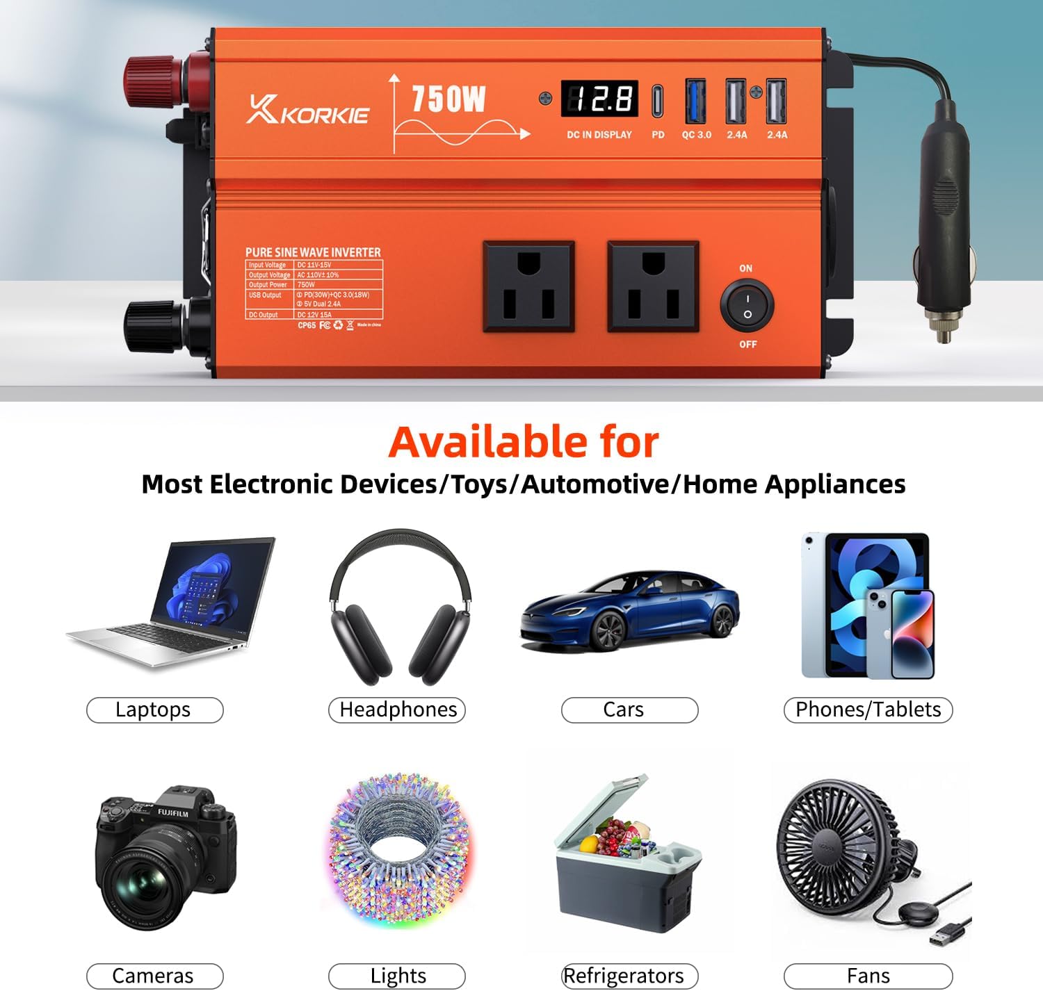 - 【Widely Compatibility Inverter 】: Pure Sine Wave inverter is a versatile device that is compatible with a wide range of devices, You can use it to power your laptop, television, audio system, refrigerator, and other home appliances. Moreover, our converter is compatible with a variety of batteries, including AGM, lithium-ion, and lead-acid batteries. Ideal for use on vacations, work trips, and camping.