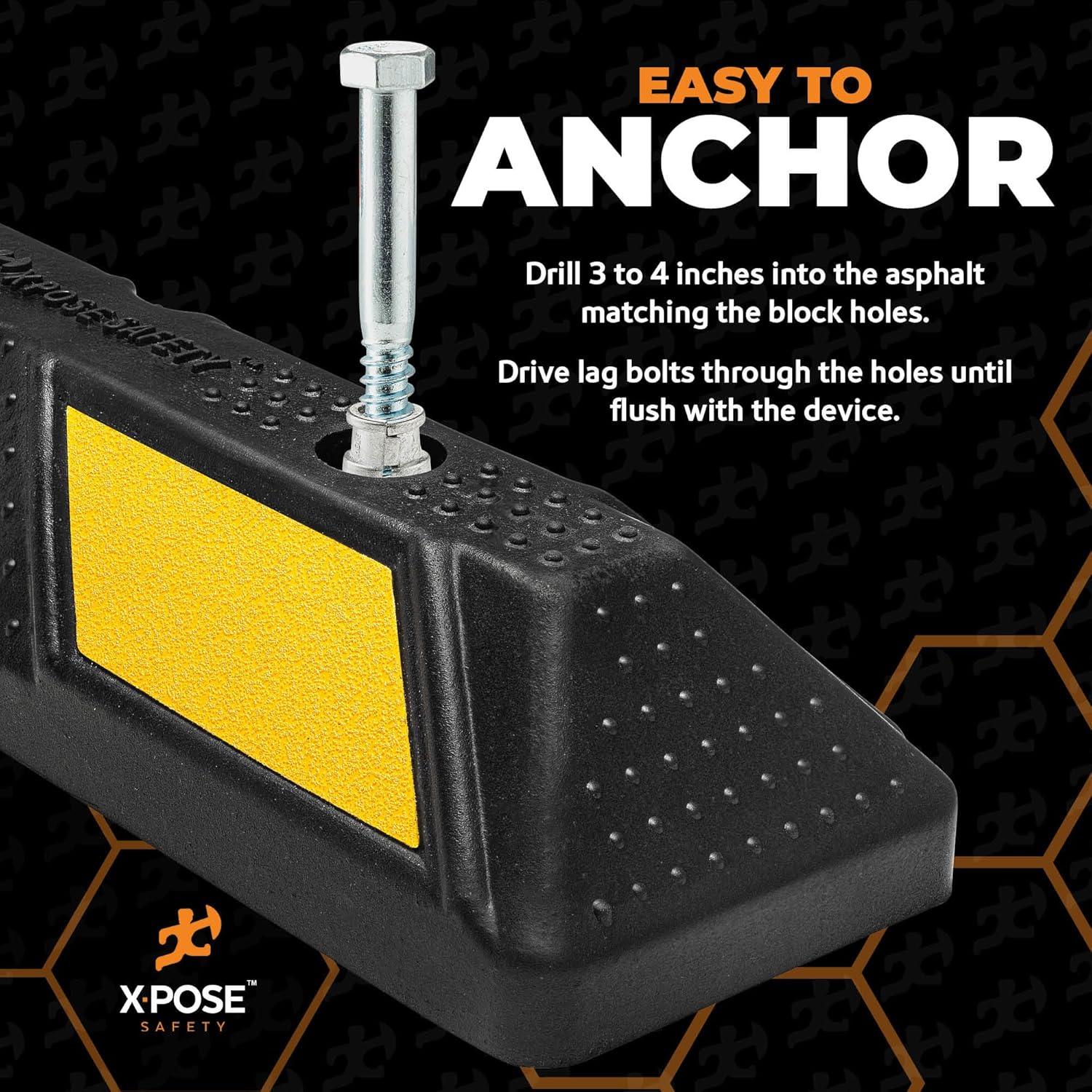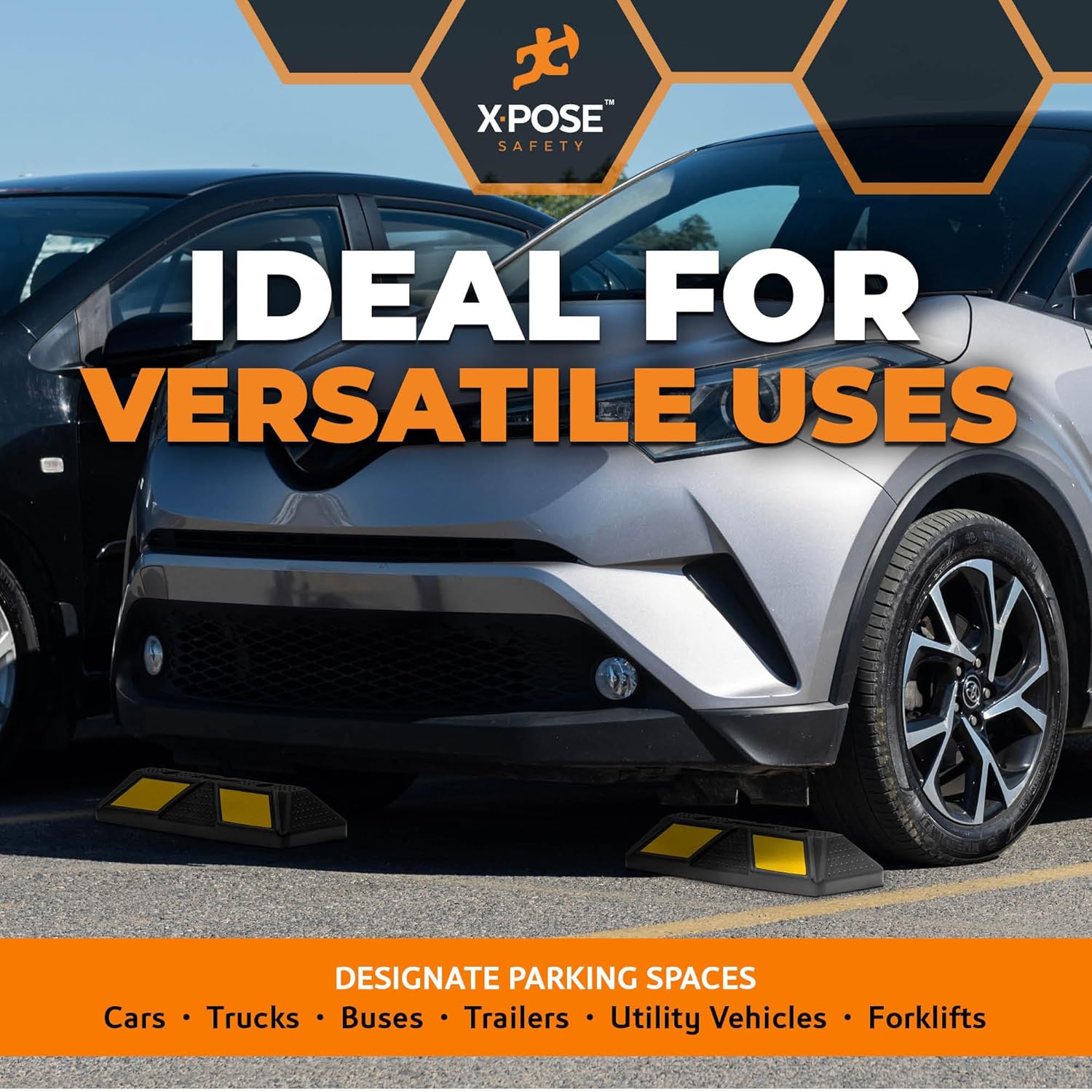 Xpose Safety 22" Heavy Duty Rubber Parking Stopper – 2 Pack Wheel Blocks for Garage, Driveway, or Ramp – Car Bumper Stop with Yellow Reflective Strips – Removable Floor Mount