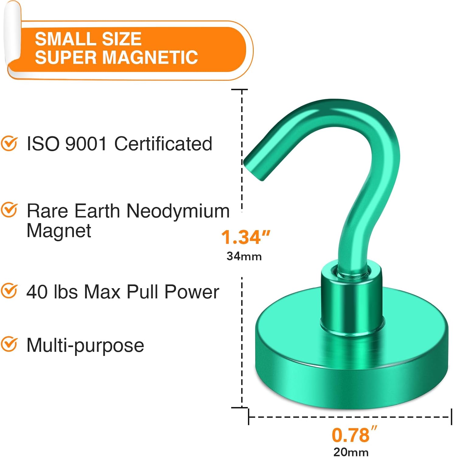- 【Excellent Layer Coating】- Our metal magnetic hooks come with an excellent triple-layer coating of Ni+Cu+Ni, which greatly reinforces their corrosion resistance. This coating is the best available, providing a shiny and rust-resistant surface that helps prevent chipping or cracking. The coated steel cup also provides protection for the heavy duty magnetic refrigerator hooks. With this excellent layer coating, you can trust that our magnetic hanging hooks are safe to use and will last a long time