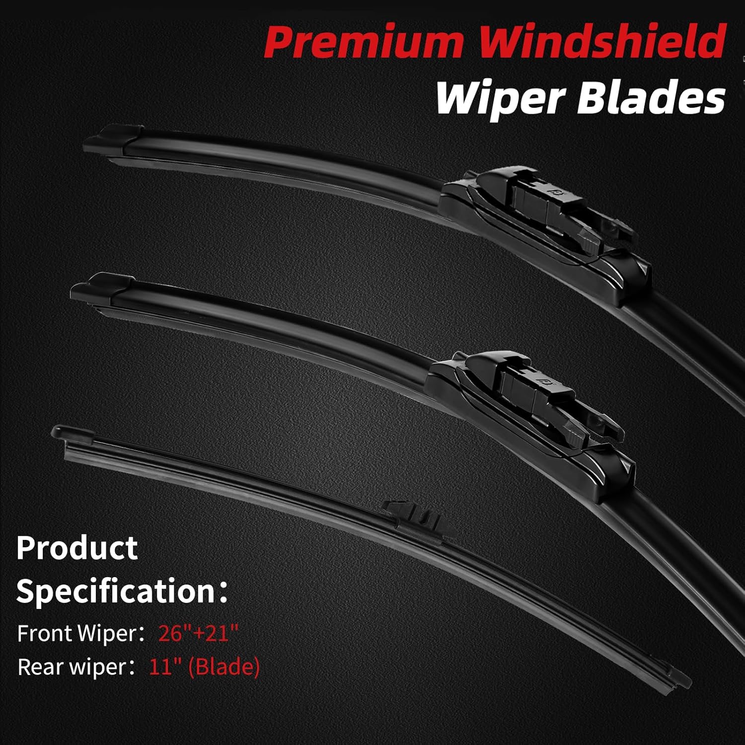 OTUAYAUTO Premium Windshield Wiper Blades - Replacement for Ford Explorer 2020-2023 - Precision Fit, All-Weather Performance, Front and Rear Wiper Blades, Pinch Tab - 26"+21"+11" (Pack of 3)