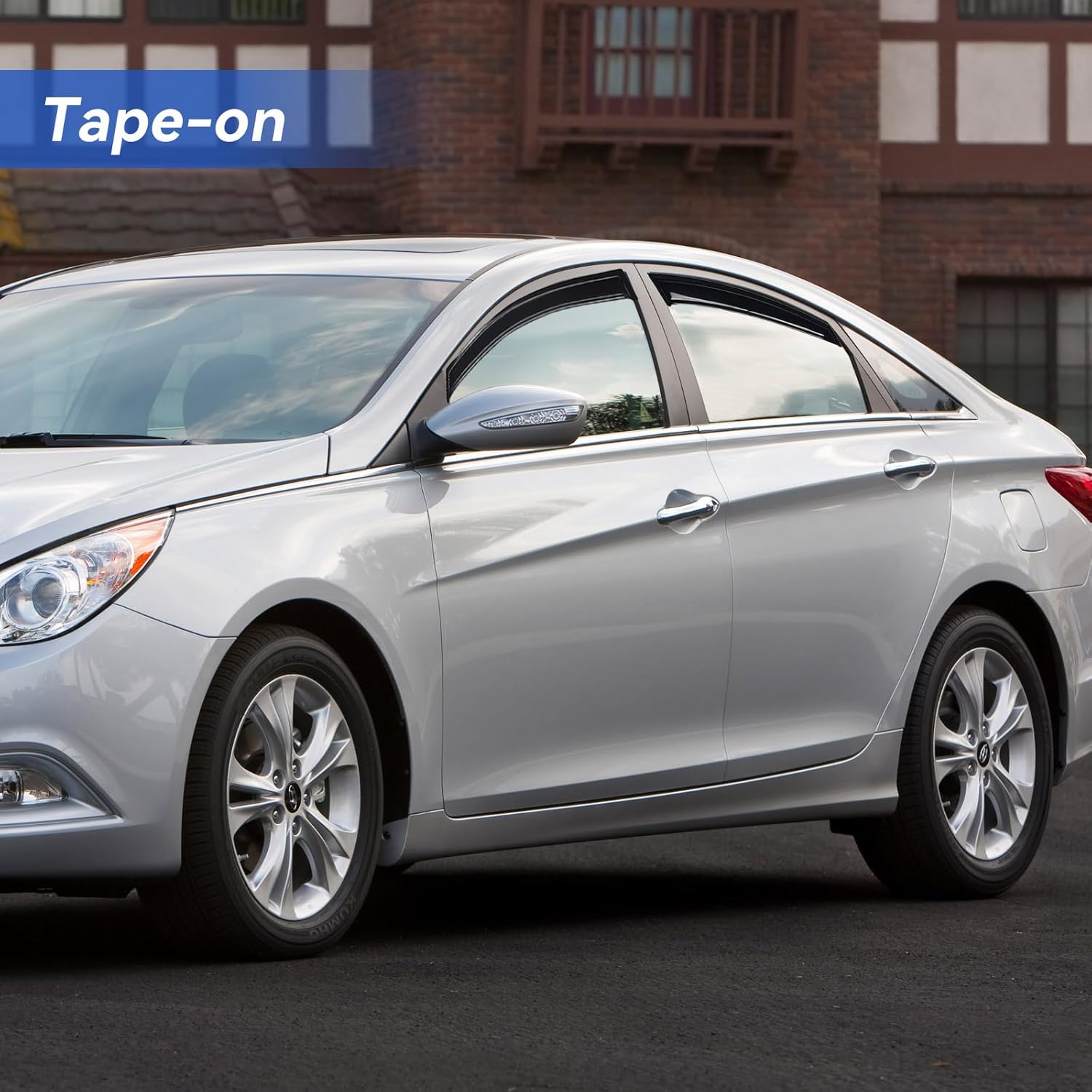- 【Perfect Fit】YQAUTEC Out-Channel Window Visors Rain Guards Shield for 2011 2012 2013 2014 Hyundai Sonata Limited SE GLS, Side Window Vent Wind Deflectors Visors Shades for 11 12 13 14 15 16 2015 2016 Hyundai Sonata Hybrid.