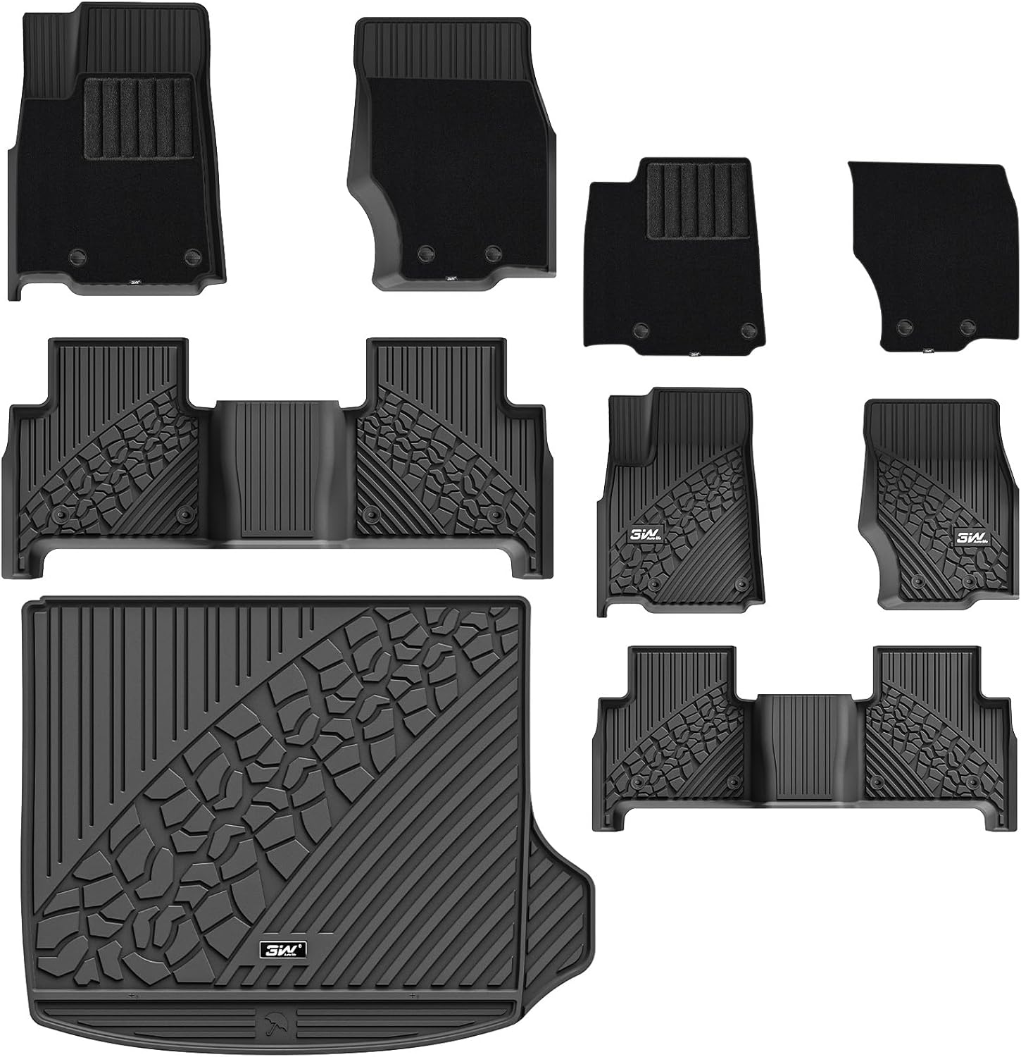 3W Floor Mats & Cargo Liner Fit 2022-2025 Jeep Grand Cherokee(Non L or WK) Carpets for 1st Rows Black Mats Custom Fit for Grand Cherokee, 6PCS