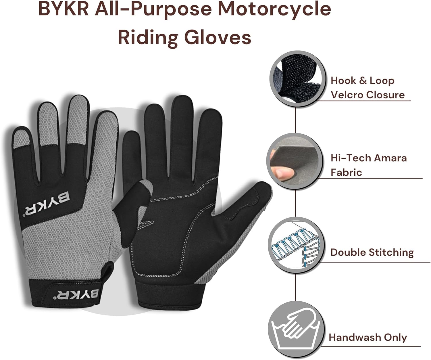 - PARAMOUNT PROTECTION - Engineered with BYKR silicon printing with ammara fabric, double stitched palm for unparalleled hand safety during motorcycle and other adventure outdoor sports. Ride confidently knowing your hands are fully protected from impacts and abrasions.