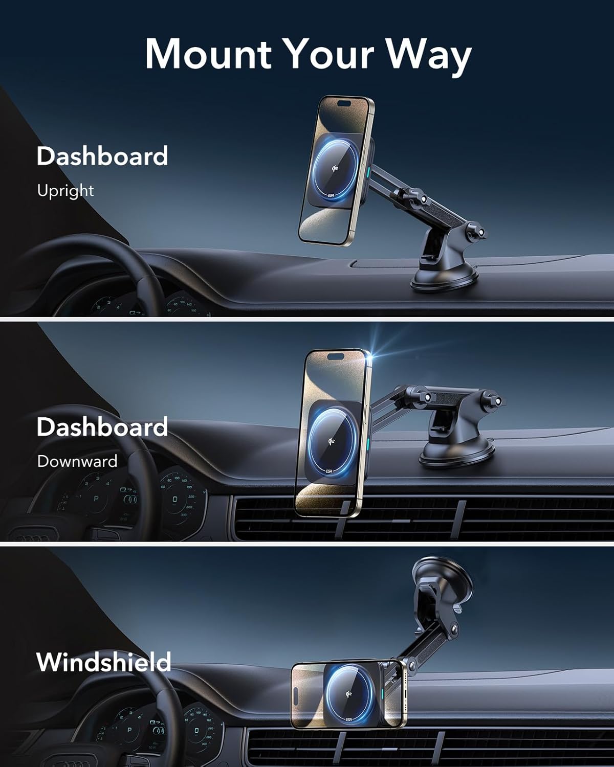 ESR for Qi2 15W MagSafe Car Mount Charger, Qi2-Certified MagSafe Car Charger, Dashboard/Windshield Magnetic Wireless Car Charging, Car Phone Mount for iPhone 16/15/14/13/12, S25, Fast Charging, Black