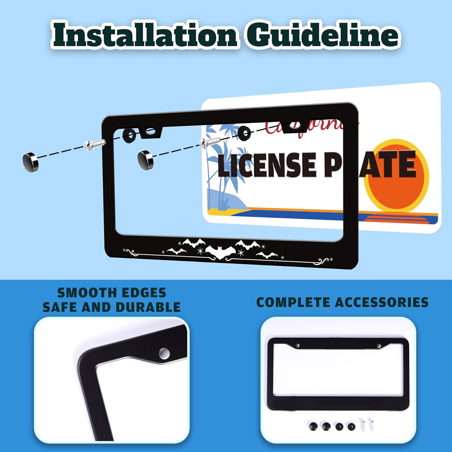 Bat License Plate Frame Funny Gothic Style License Plate Holder Animal for Front or Rear Car Tags Reusable Durable Stainless Steel Car Decoration with Screws 6.3 X 12.2 Inch for Men Women