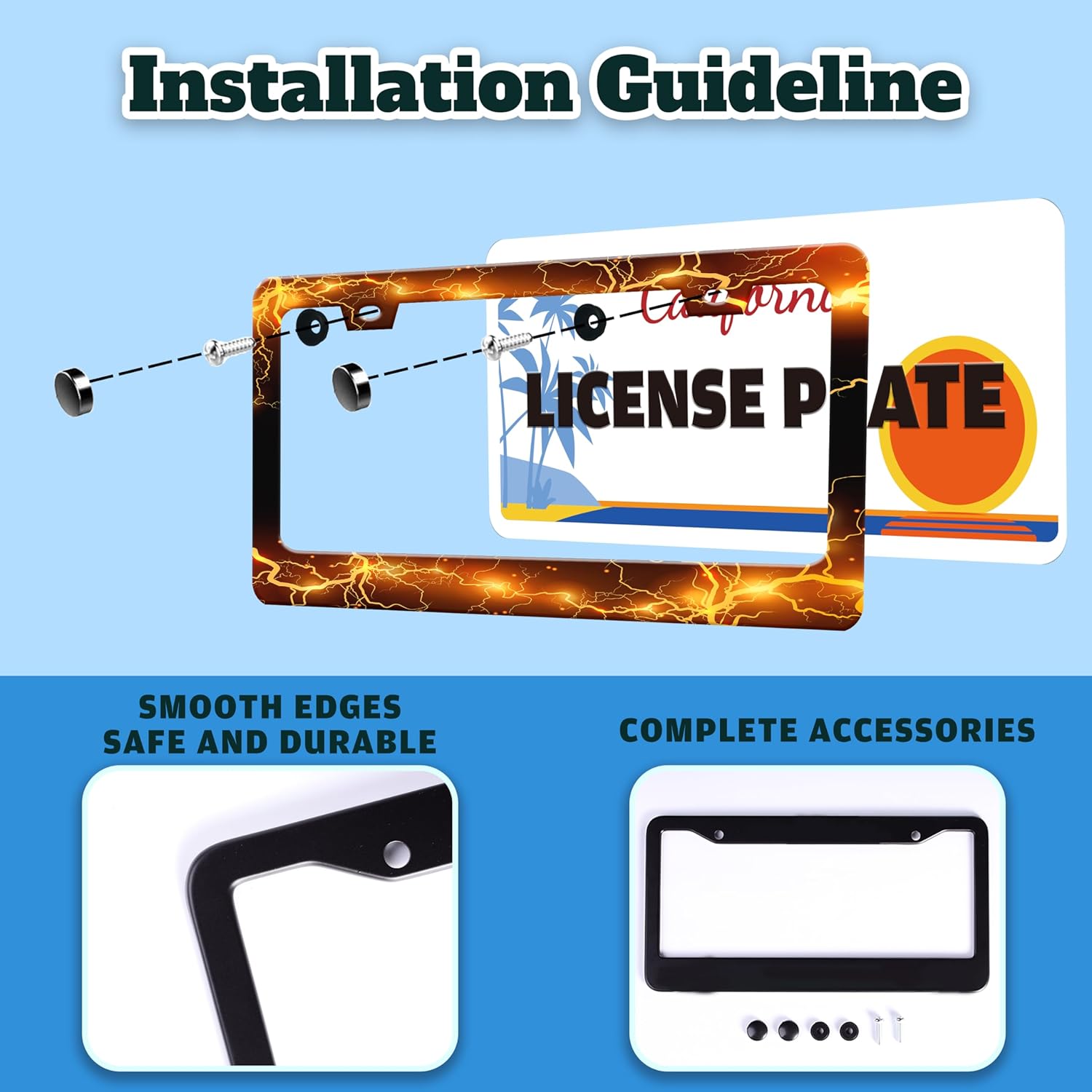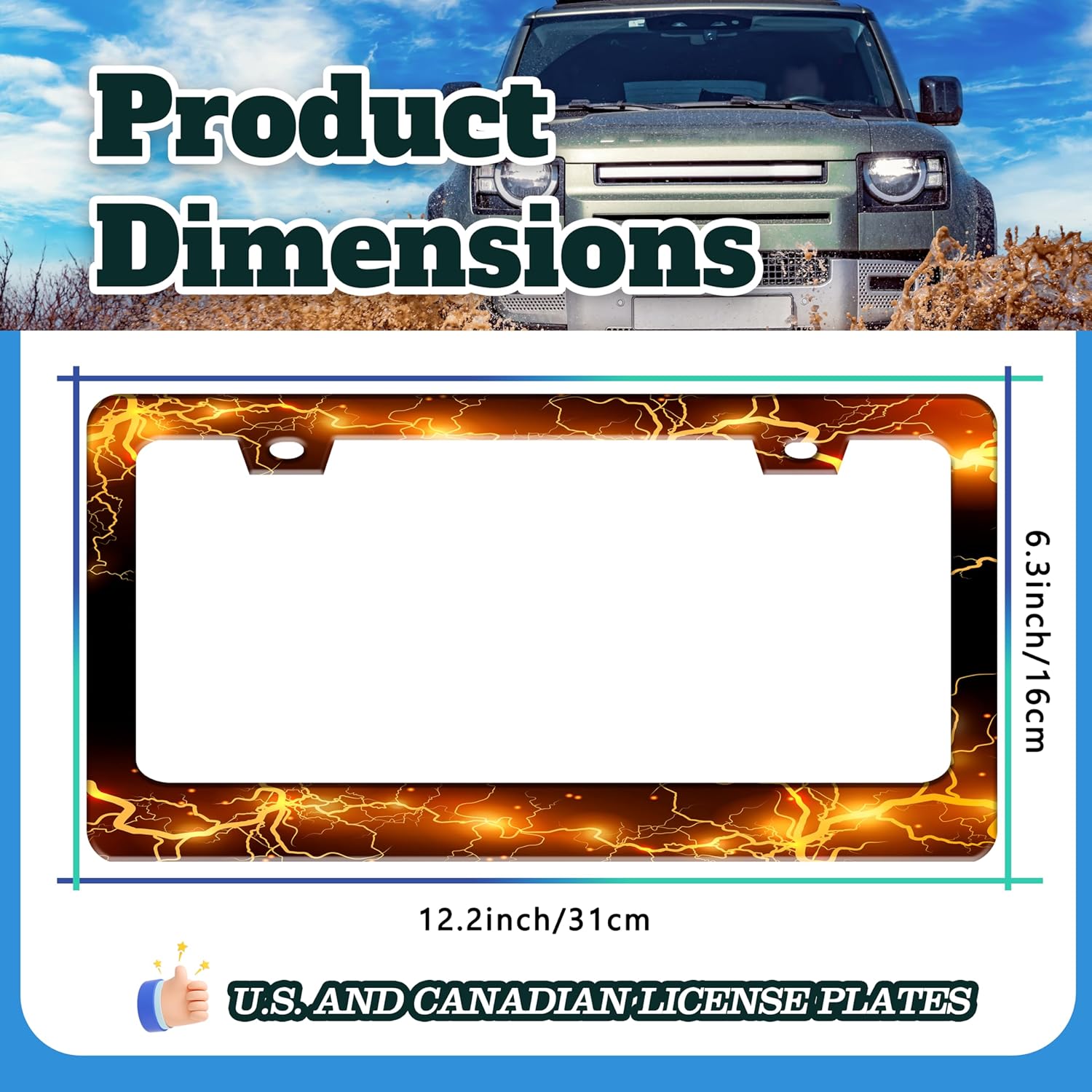 Yellow Red Thunder and Lightning License Plate Frame Fantasy Landscape License Plate Holder for Front and Rear Car Tags Stainless Steel Car Funny Decoration with Screws 6.3 X 12.2 Inch for Men Women