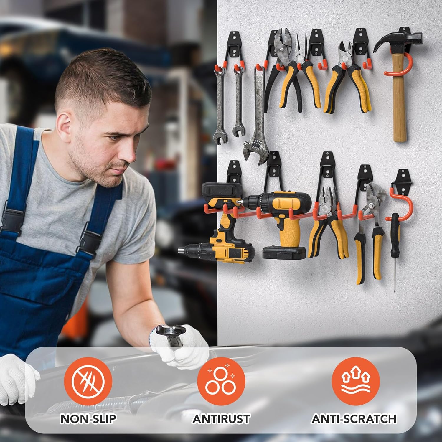 - PVC ANTI SLIP COATING:The anti-slip coating can protect items from scratches and damage,and prevent them from sliding.Full-surface painting can prevent garage hooks from rusting and corroding,thereby extending their service life
