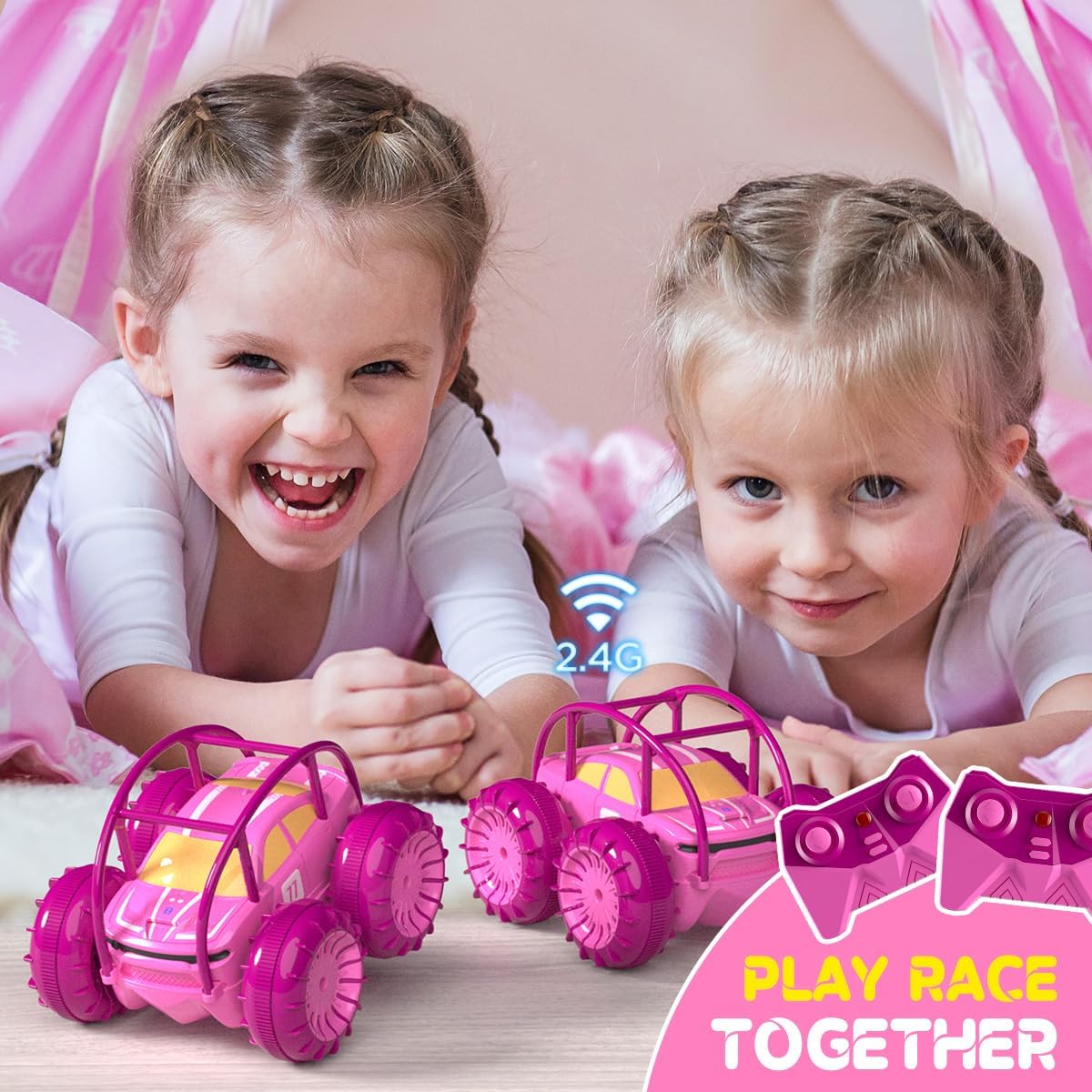 • Amphibious RC Car: What kind of experience is it to have a remote control car that can drive on water and land? This 2 in 1 waterproof rc car for kids can meet your imagination. With its IP68 waterproof seal design, it can break all limits. You can play in the water like a rc boat, or race with your friends on the land. Rain or shine, it's always game on!