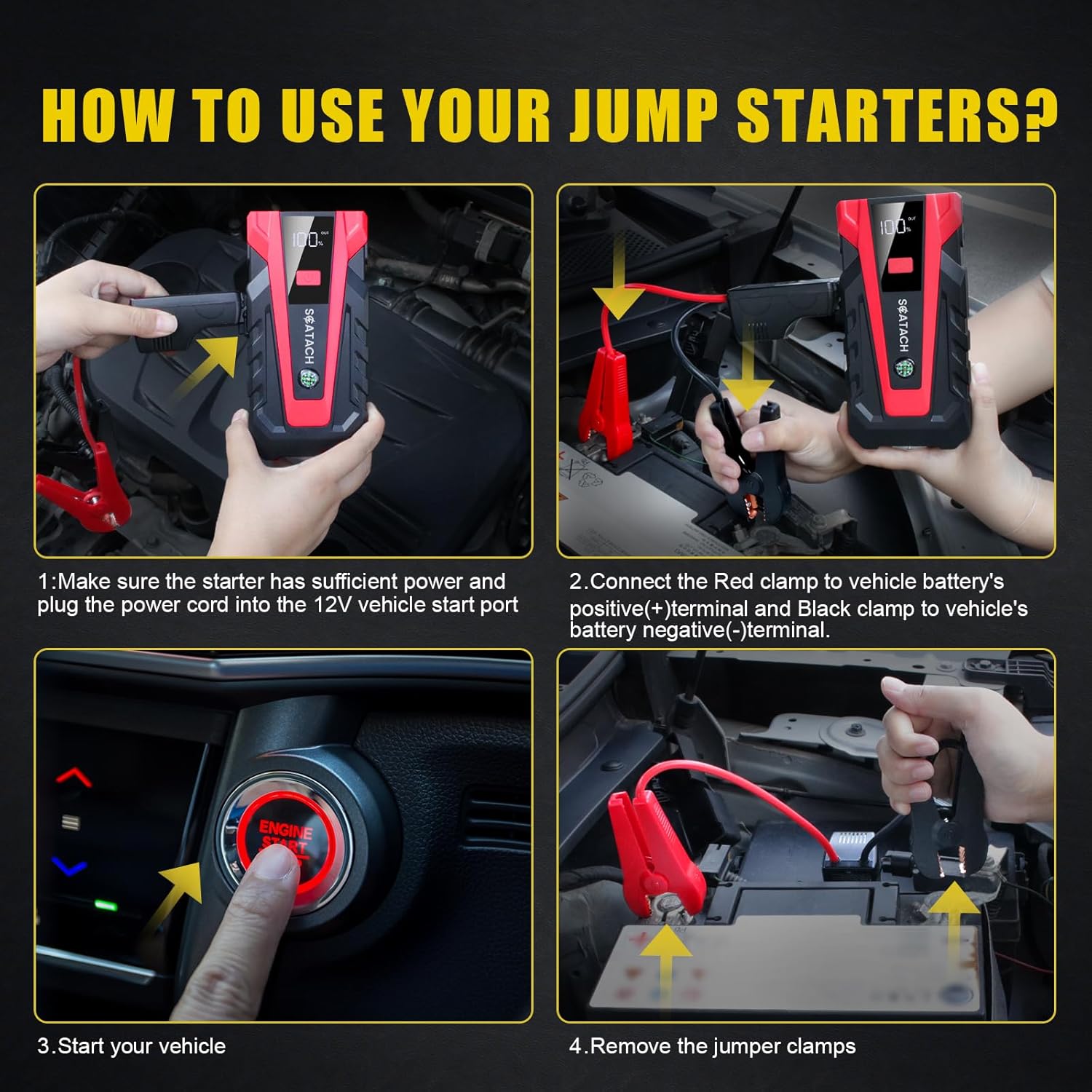 Scatach 011 3500A Car Battery Jump Starter,12V Jump Starter Battery Pack (up to 9.0LGasoline and 7.0L Diesel Engine), Portable Jump Box with 3 Modes Flashlight and JumperCable