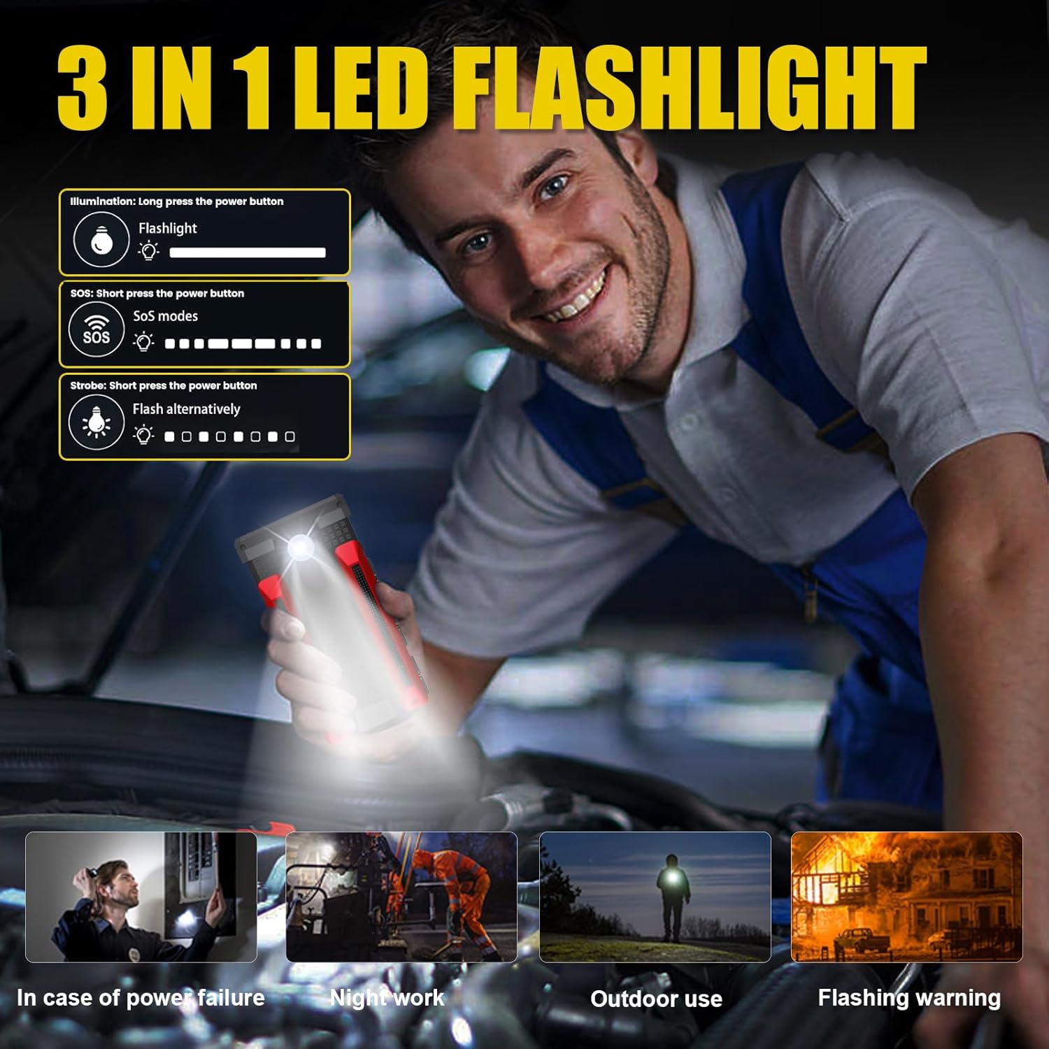 - In addition to its jump-starting capabilities, this portable jump starter also features three flashlight illumination modes - normal, strobe, and SOS - providing emergency lighting in different scenarios. The built-in safety features of the jumper cables, including reverse polarity protection, overcurrent protection, and short circuit protection, guarantee a safe and hassle-free jump-start experience.