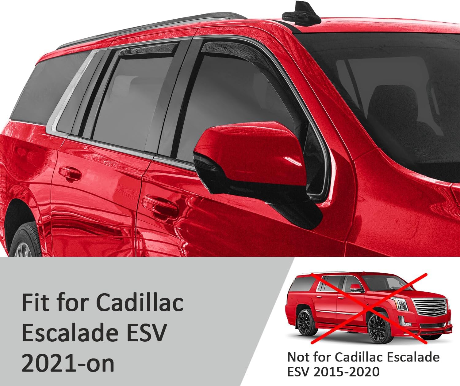 Voron Glass in-Channel Extra Durable Rain Guards for Cadillac Escalade ESV 2021-2025, Window Deflectors, Vent Window Visors, 4 Pieces - 200622