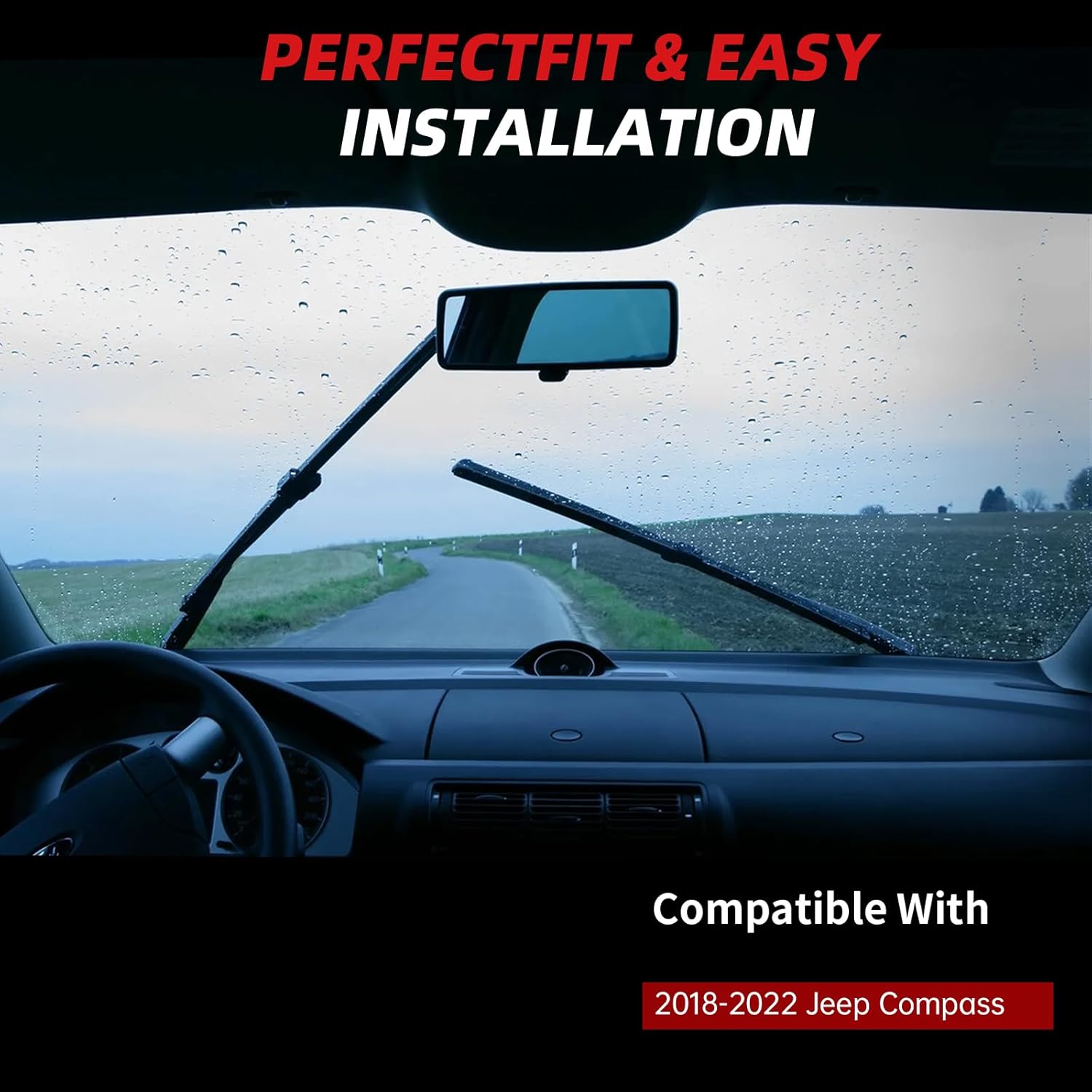 - [24"+18"+10" Fitment]: Replacement for 2018 2019 2020 2021 2022 Jeep Compass front rear windshield wiper blades set