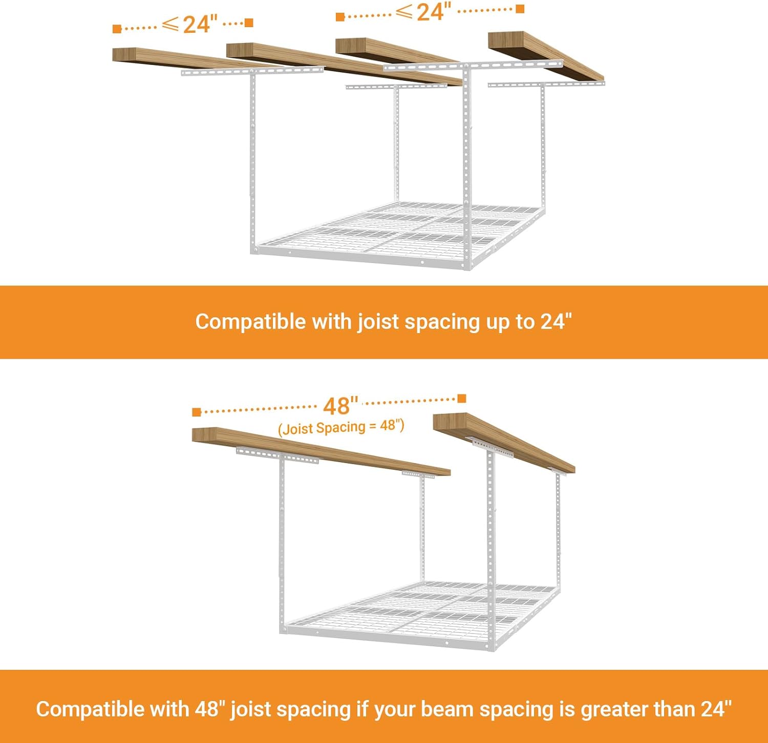 - Large Capacity: The 4x6ft overhead garage storage rack combines a weight-bearing capacity of 450 pounds, which provides a reliable storage solution.