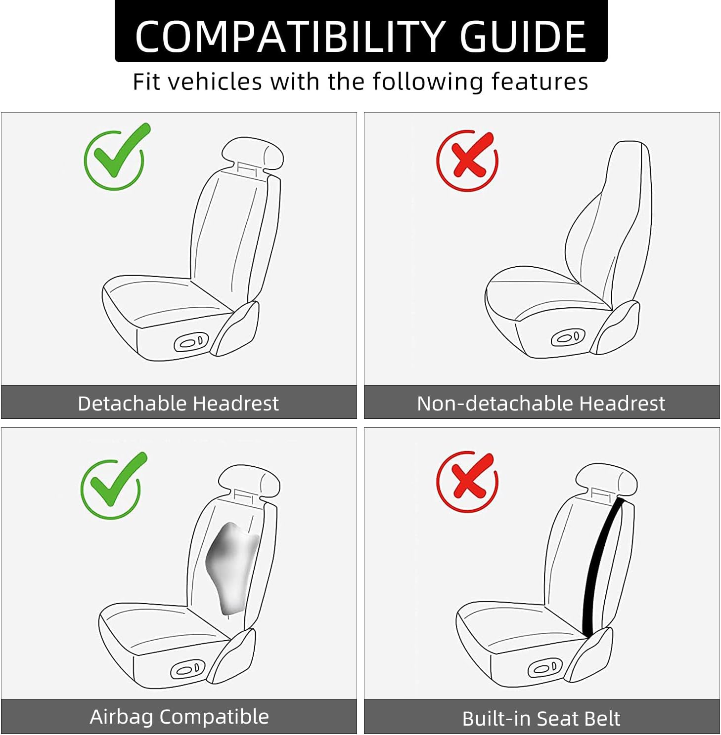 - Universal Fit: Car Seat cover side with velcro, can adjust the width according to the size of the seat. Car seat cushion independent headrest has great elasticity, the whole set of auto seat cover protector has strong wrapping fit most for Sedan Cars Pick-up Trucks SUV.