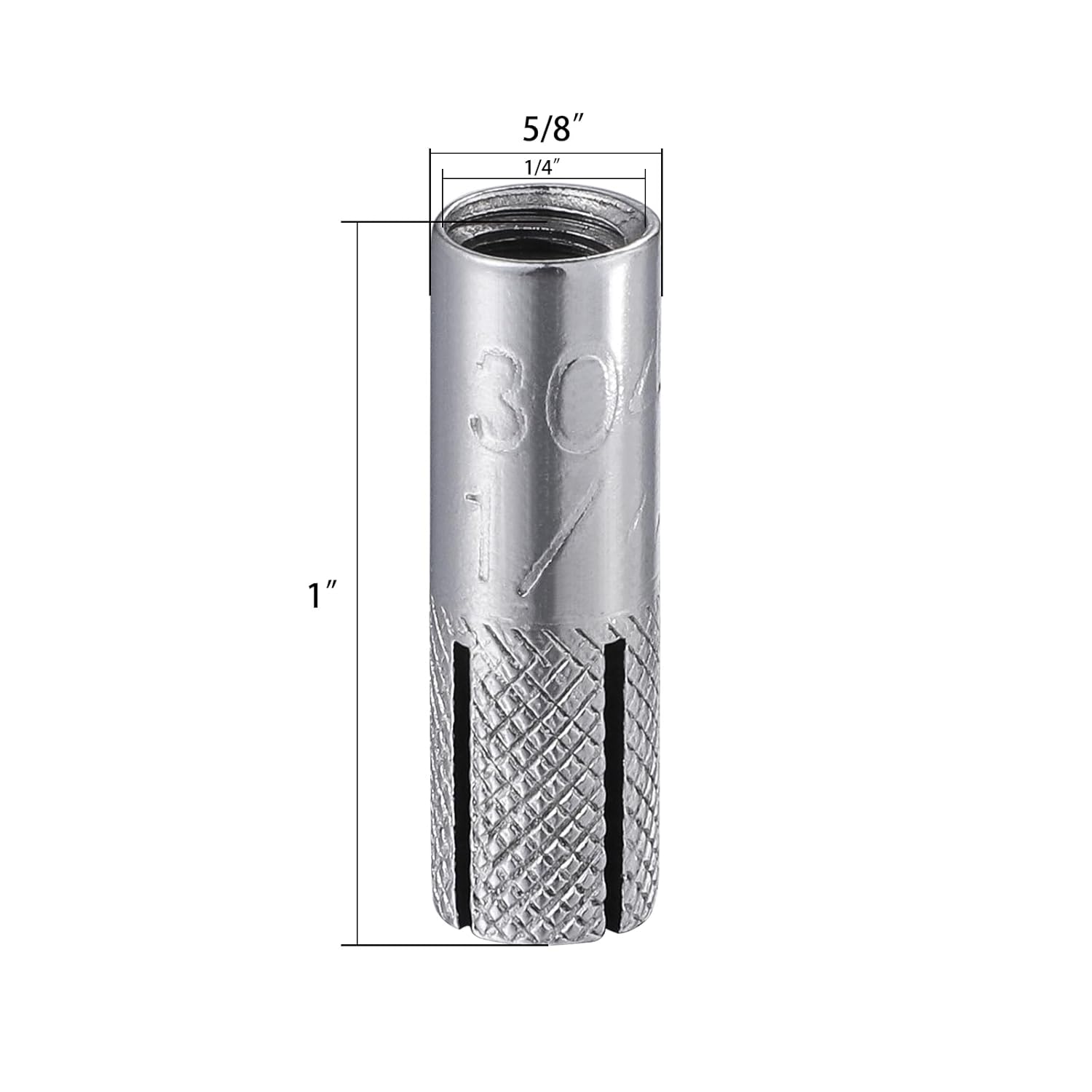- [Function] 1/4" Inch premium stainless steel material knurled drop in anchors: 1" hole depth and 3/8" hole diameter, use with 1/4-20 bolt.