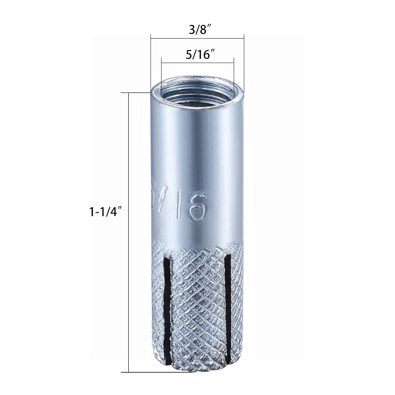 - [Function] 5/16" Inch premium iron material knurled drop in anchors: 1-1/4" hole depth and 3/8" hole diameter, use with 5/16-18 bolt.