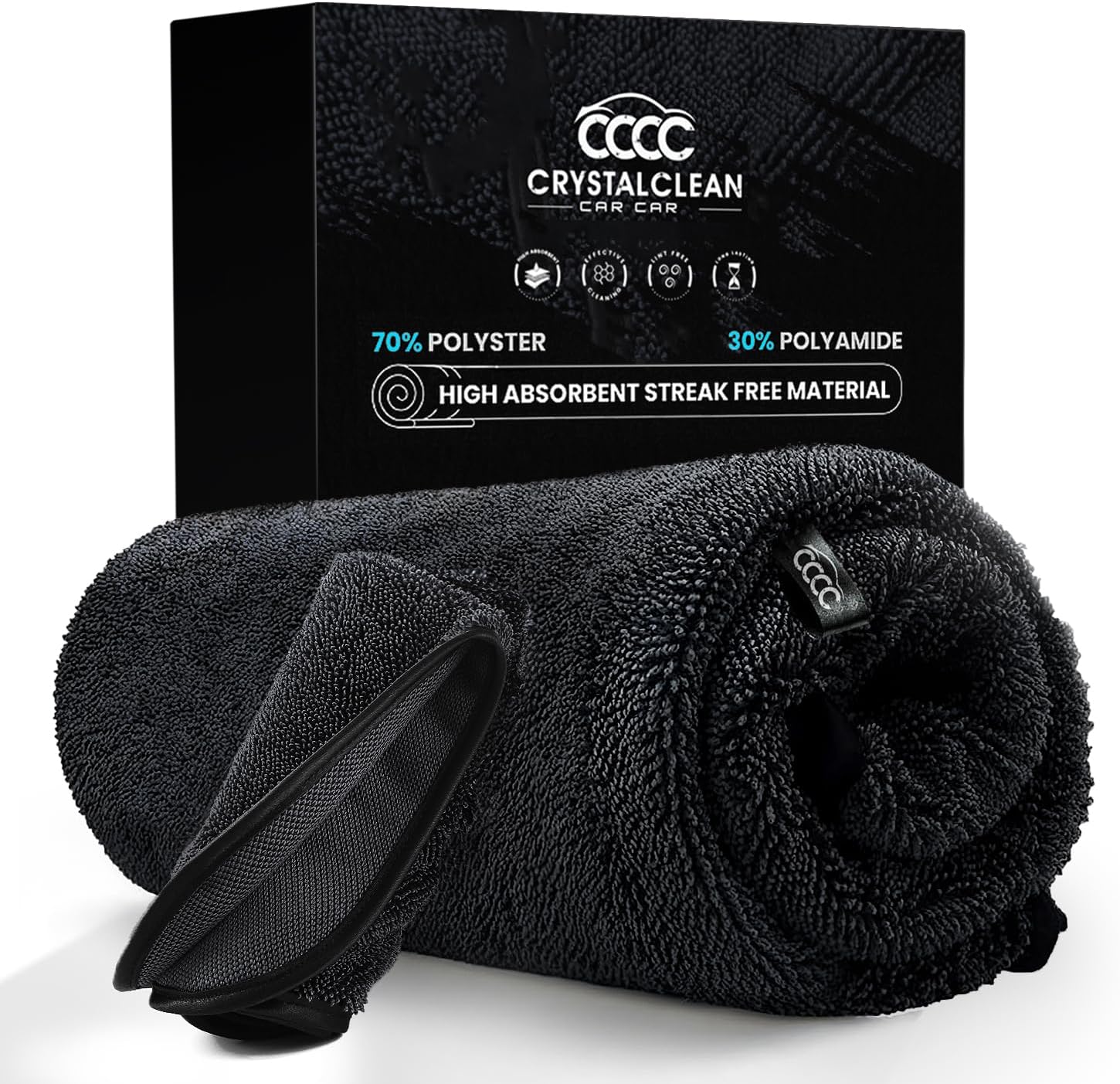 Crystal Clean 1300GSM Microfiber Towels for Cars – XL Drying Towel 2-Pack (24x36 & 12x12) with Double Twisted Loop, Professional Detailing Towel Car Detailers - Quick Dry, Paint Safe & Swirl-Free