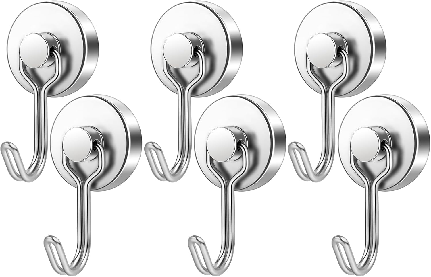 - Durable Build with Polished Finish: Crafted with N52 Grade neodymium magnets and a steel base, each hook features a mirror-like nickel coating that resists rust, corrosion, and scratches. The sleek finish not only adds durability but also maintains a clean, professional look for long-term use.