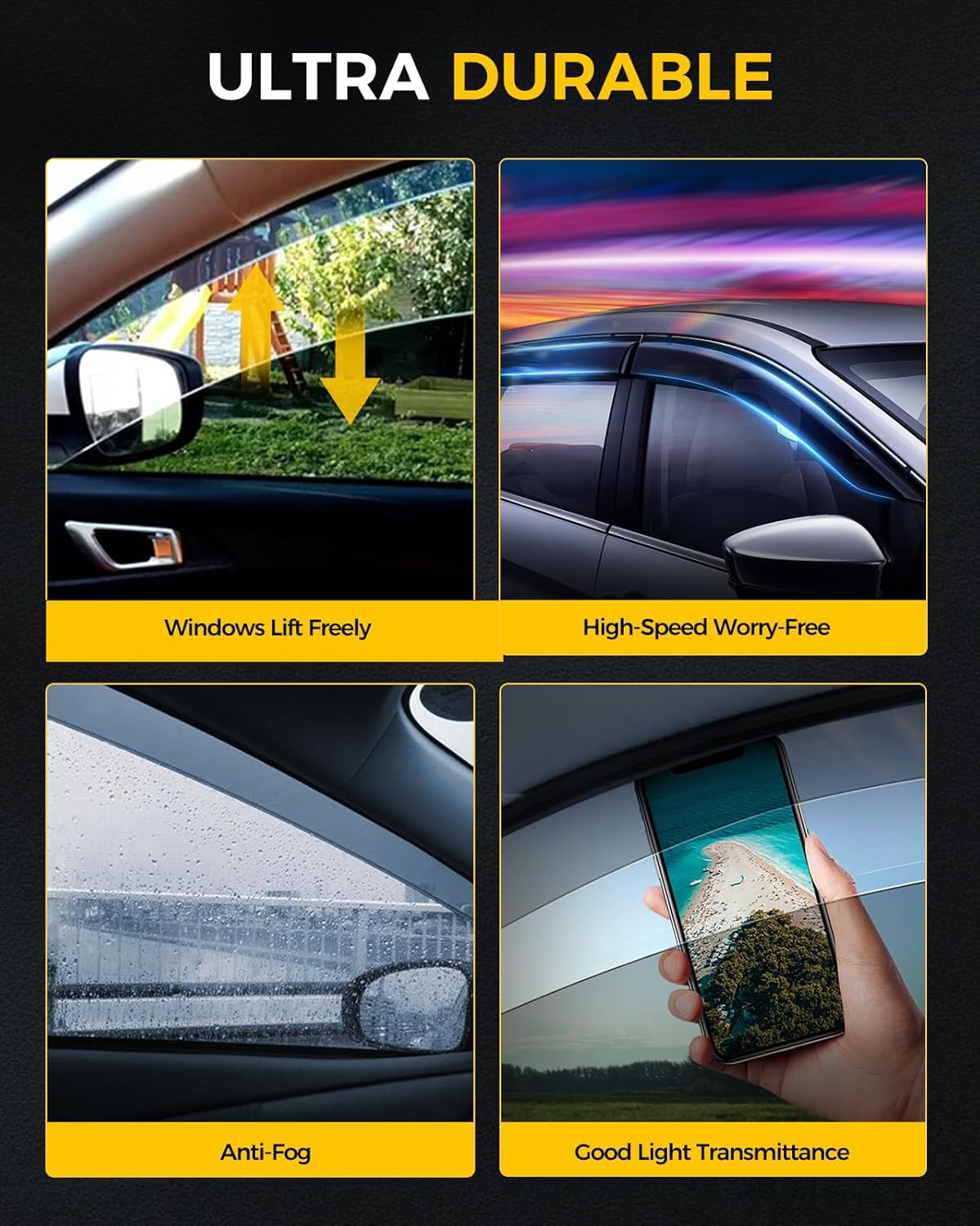 - 【Improve Ventilation】KYX car window deflectors are designed with 3D aerodynamics to reduce wind noise and redirect airflow. Installing rain guards helps improve ventilation inside the car, reducing fog on rearview mirrors and windows, allowing you to enjoy fresh air in any weather.