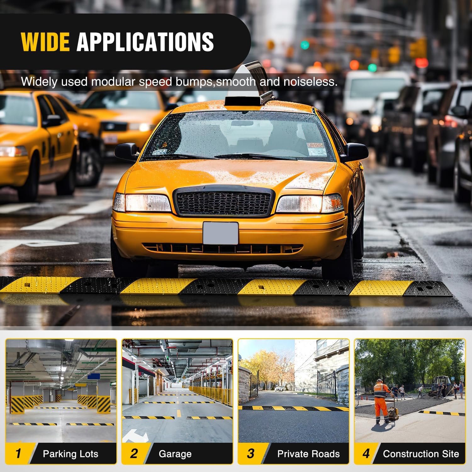 - Safety Design: Nilight rubber speed bumps with conspicuous black and yellow colors to serve as a highly visible warning sign for drivers and pedestrians to slow down. Ensuring a safer driving experience on roadways, parking lots and other parking facilities