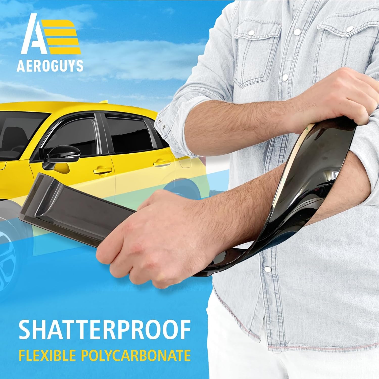 - Incredibly Durable AEROGUYS Auto Window Deflectors – They are made with strong and tough polycarbonate which is clear and scratch-resistant. They also provide UV protection making your ride more comfortable under all weather conditions.