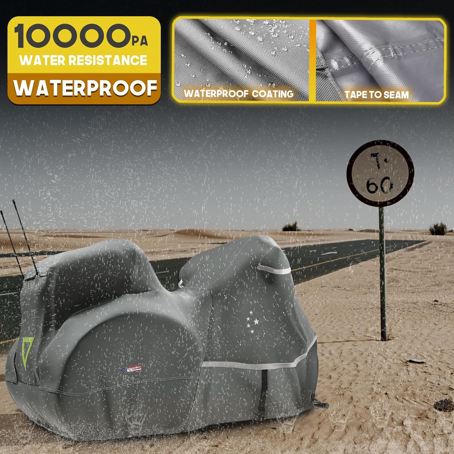 - Performance 600D: Our motorcycle covers are made from 600D Oxford Fabric, providing strong and long-lasting protection for your motorcycle's varnish against rain, heat, sun, snow, scratches, and more. To enhance the waterproof effect, we've added waterproof strips at the seams, ensuring even better protection against the elements.