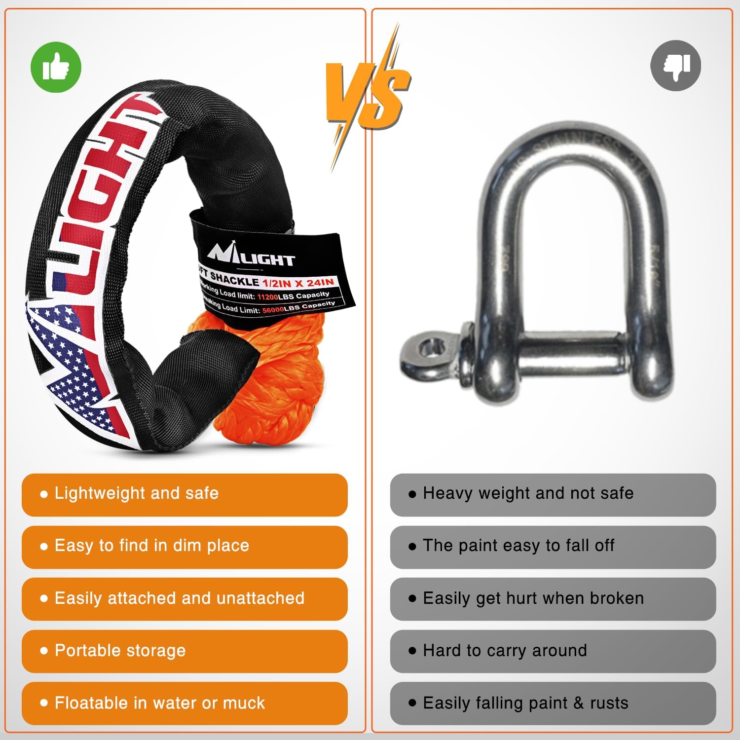 - 【Package Included】2PCS 1/2" x 24" Synthetic Soft Shackle, 1PCS Heavy Duty Drawstring Bag. The packaging is specially designed to avoid your package being damaged during transportation.2 Years Warranty Honored by Nilight.