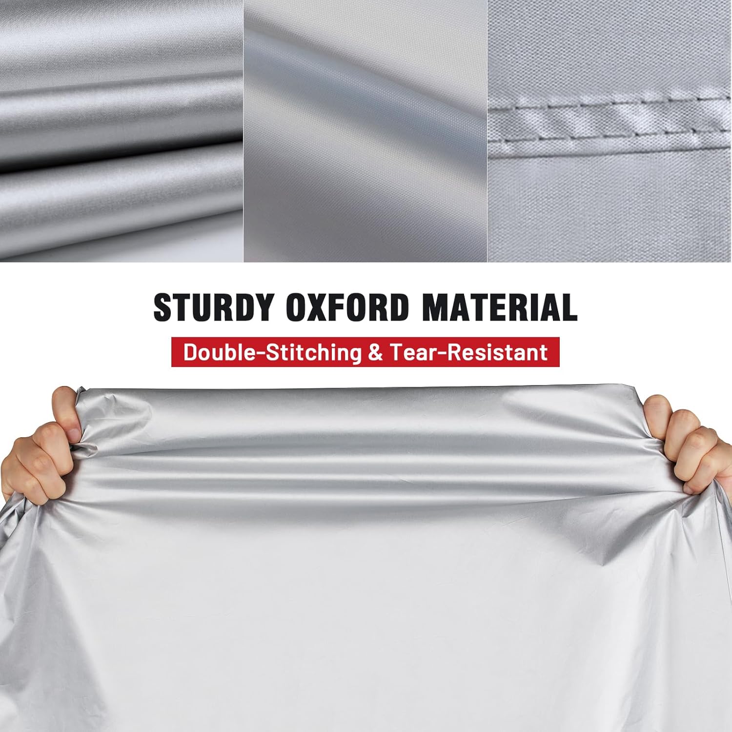 - 【Windproof】- The elasticated edge of the cover will provide a good fit for your car, and 2 windproof straps underneath, keeps your car in place even in windy days. Nicely double-stitched craftsmanship makes the cover more durable in use.
