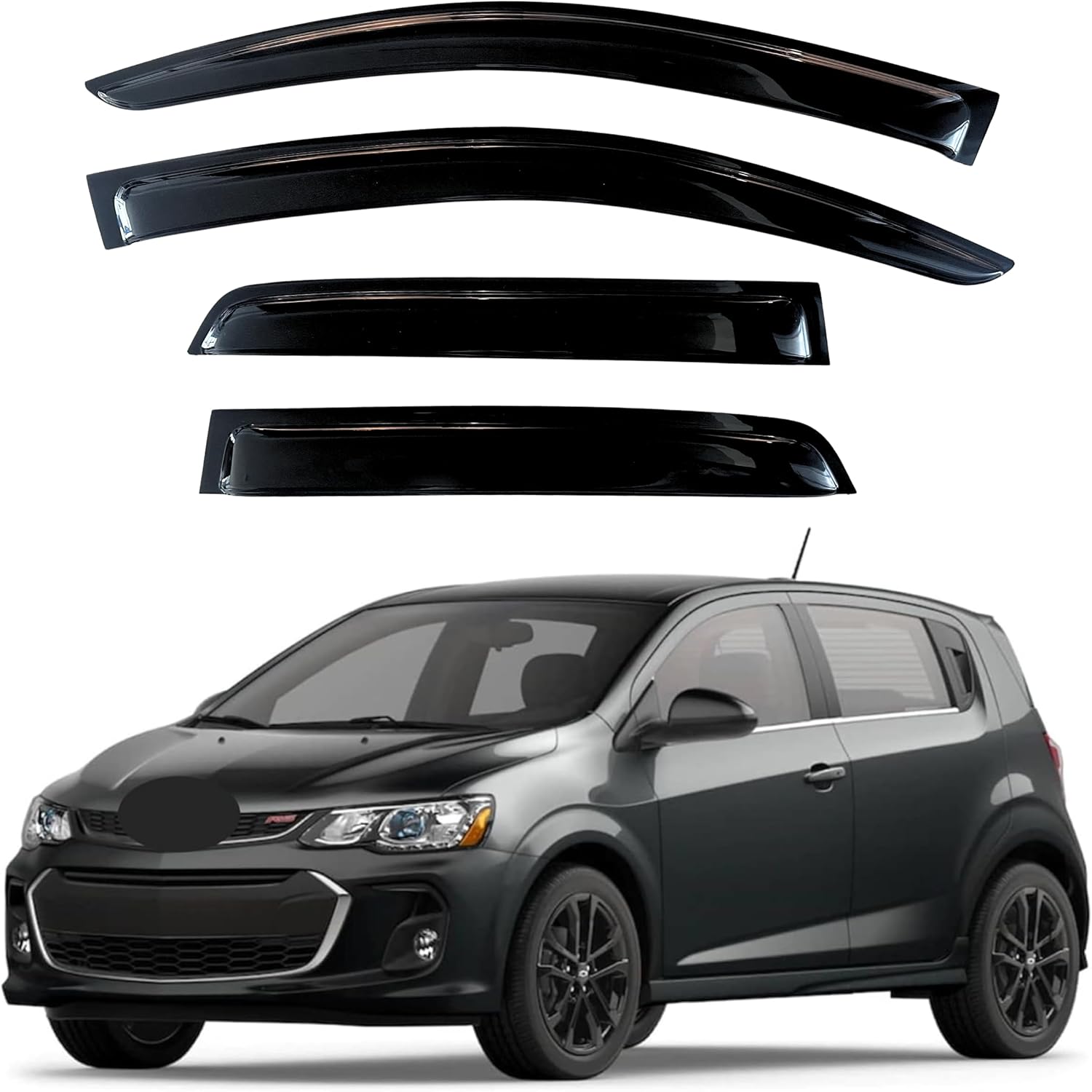 KPY Window Visor Compatible with Chevrolet Chevy Sonic Hatchback 2012-2020 (5-Door), 4PC Rain Guard Side Window Vent Deflectors Tape-On Style, 2012 2013 2014 2015 2016 2017 2018 2019 2020