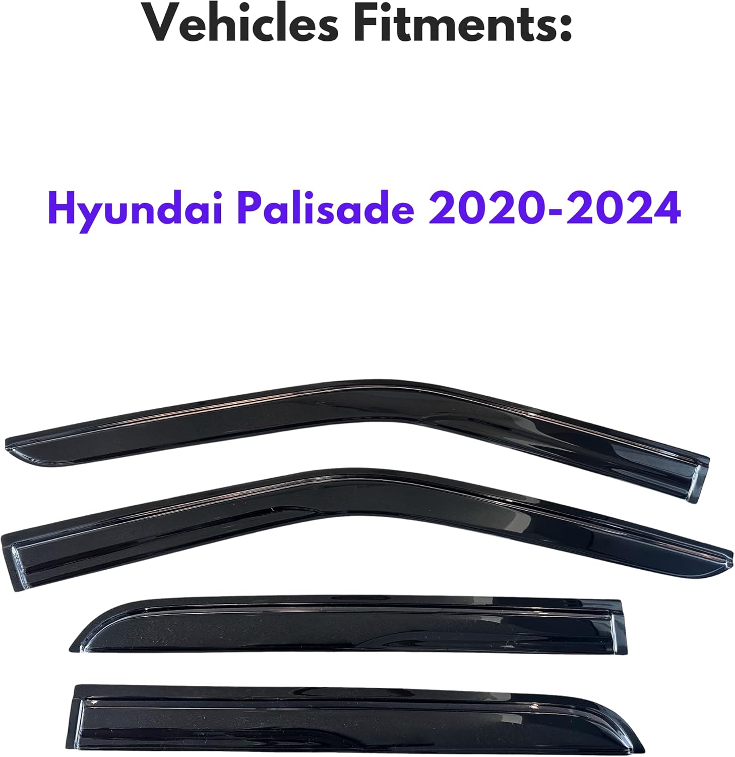 - 【Perfect Fit】KPY window visors rain guards vent deflectors compatible with Hyundai Palisade 2020 2021 2022 2023 2024 (Mugen Style)