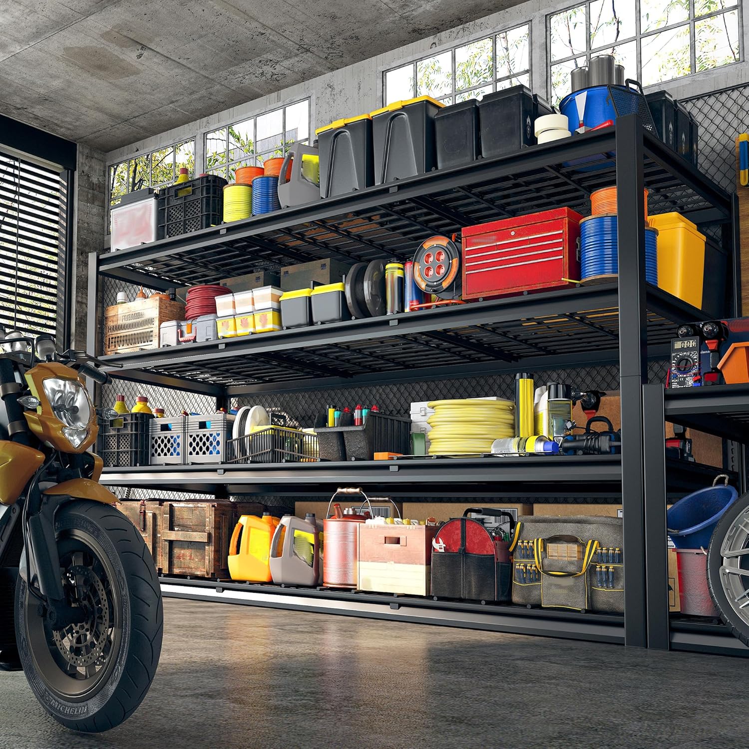 - 【Sturdy and Durable Storage Shelves】The garage shelves are composed of steel columns and metal wire boards. Each level has 2 support bar and 9 reinforced ribs to ensure the stability of the metal shelving. You will receive two pairs of anti-tipping kits to prevent the metal storage shelves from shaking or tipping over. All legs are equipped with pads to prevent them from scratching the floor. Our storage racks and shelving can better support your commodities and maintain stability