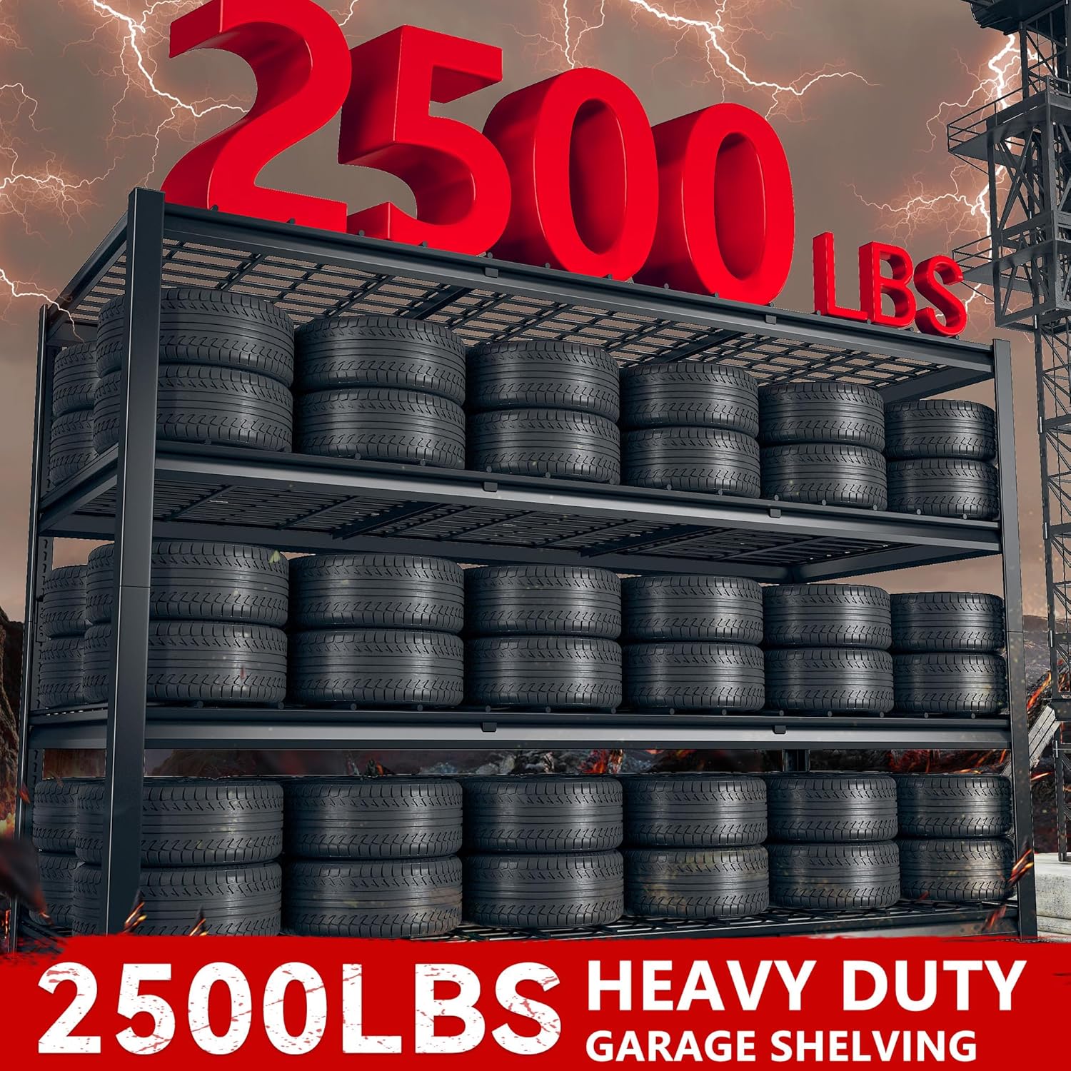 - 【2500 LBS Capacity Heavy Duty Shelving Can Hold a Lot of Heavy Stuff !! 】Garage shelving is made of premium metal material, and double-layer thickened metal racks. Wider and thicker posts make the whole metal shelving very stable.The entire metal shelves has 2500 LBS total load capacity. You can load your new storage system up with generators, air pumps and maintenance tools etc. The shelving units and storage is more sturdy and durable than normal metal shelving for storage