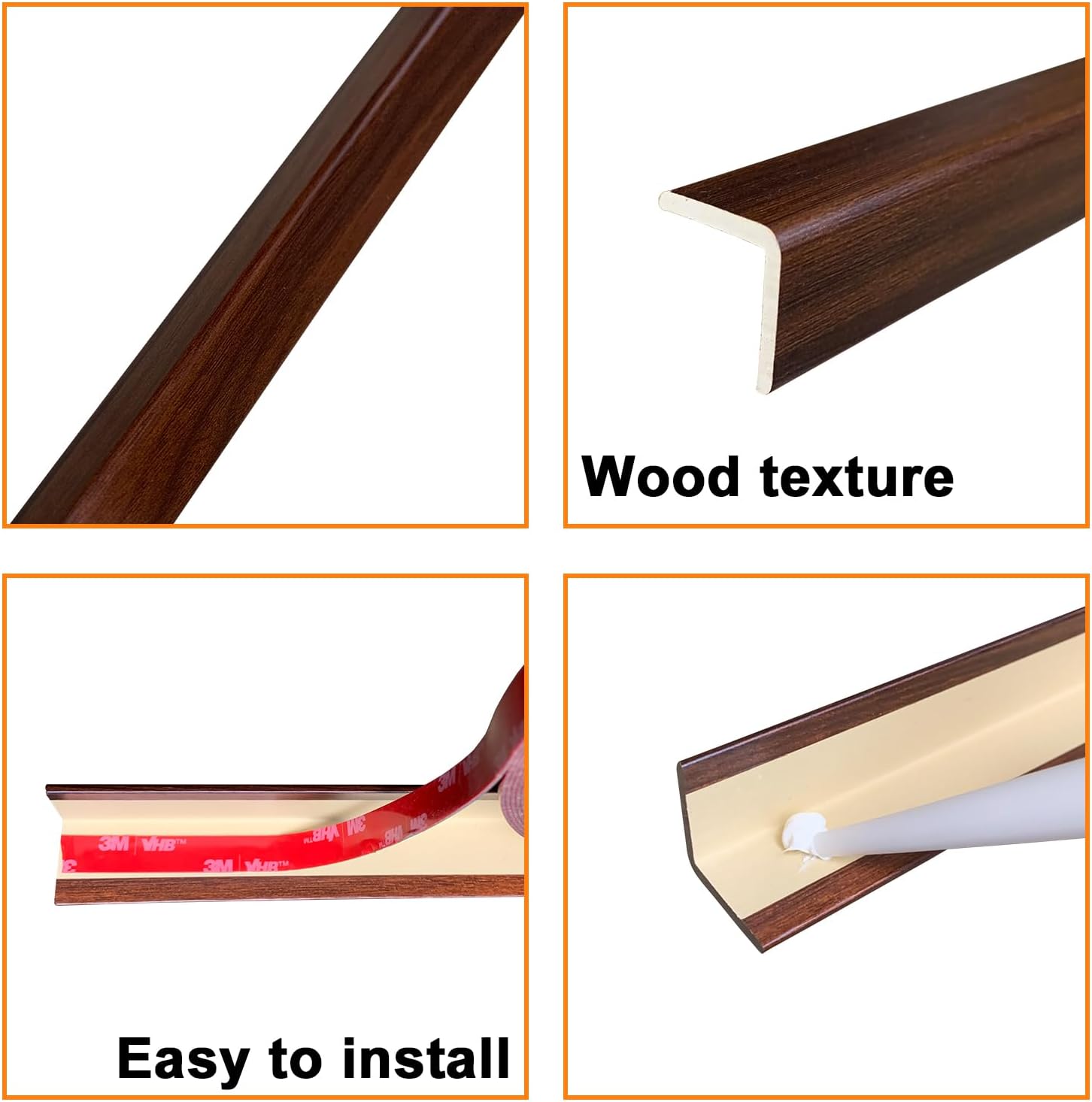 Wall Corner Protector 3PCS 45" Corner Molding Trim Oak Wood Grain Corner Trim Decorative Strips for Door and Window Frames Mirror Edges Ceramic Tiles, and Wooden Wall Edges.