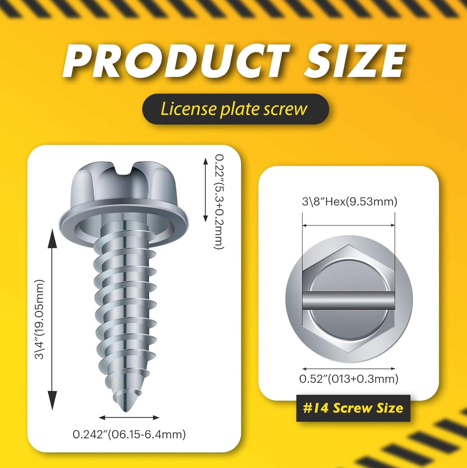【Upgraded】 100 Pcs License Plate Mounting Screws for Car Dealers #14 x 3/4" Slotted Hex Head License Plate Bolts with Rustproof Finish, Car License Plate Screws for License Plates Frames