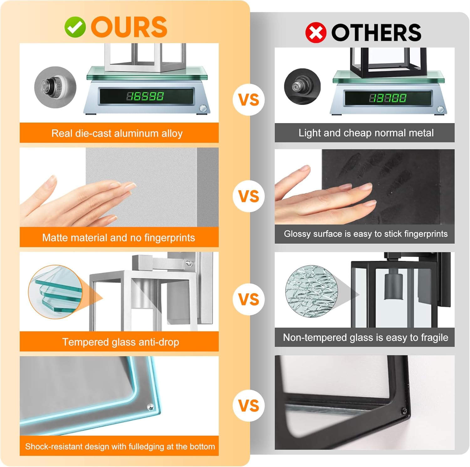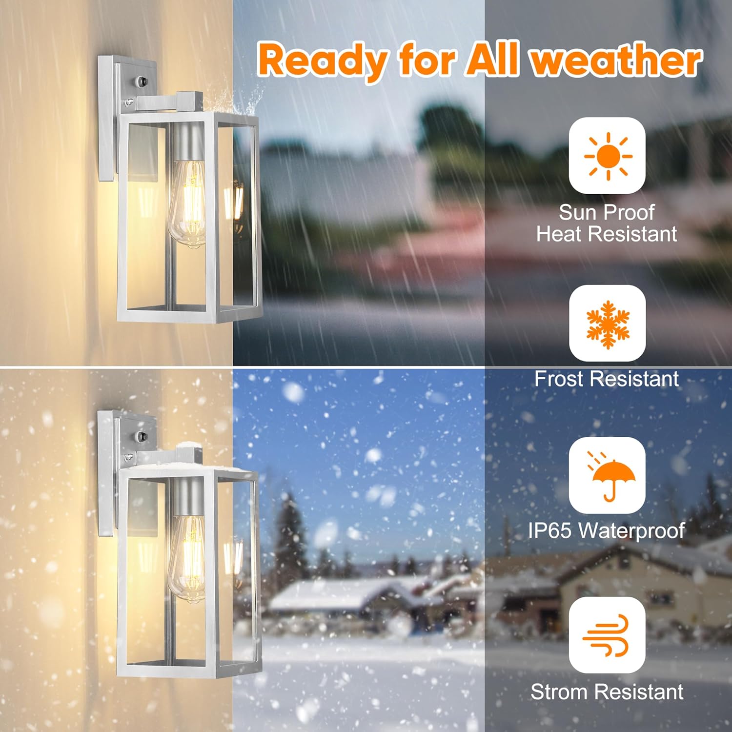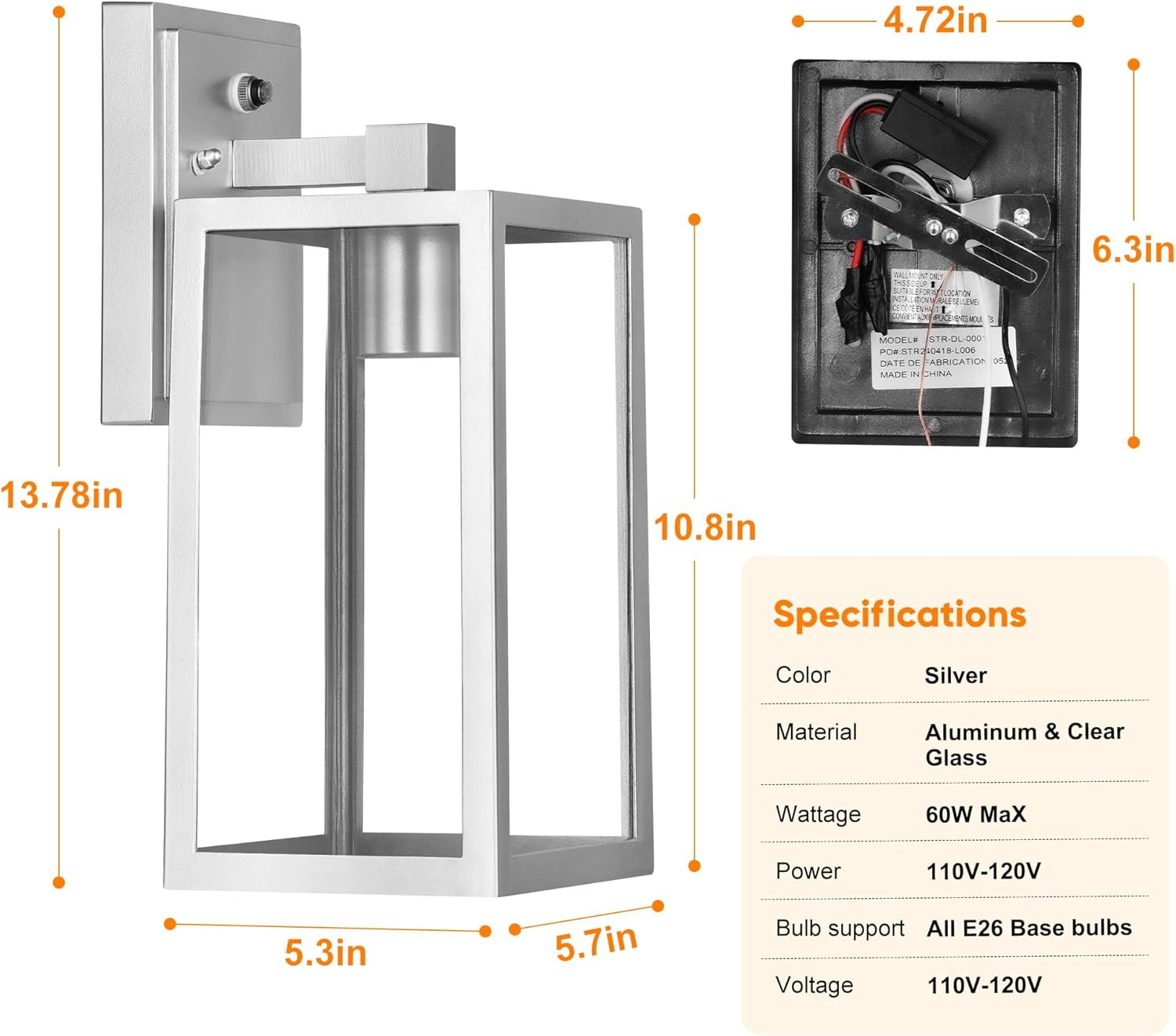 PARTPHONER Silver Dusk to Dawn Porch Lights Fixtures Wall Mount, Sensor Exterior Lighting Lamp set of 2, Anti Rust Wall Sconce, Waterproof Outdoor Wall Lantern for House Doorway, Garage, WTWL176AS2