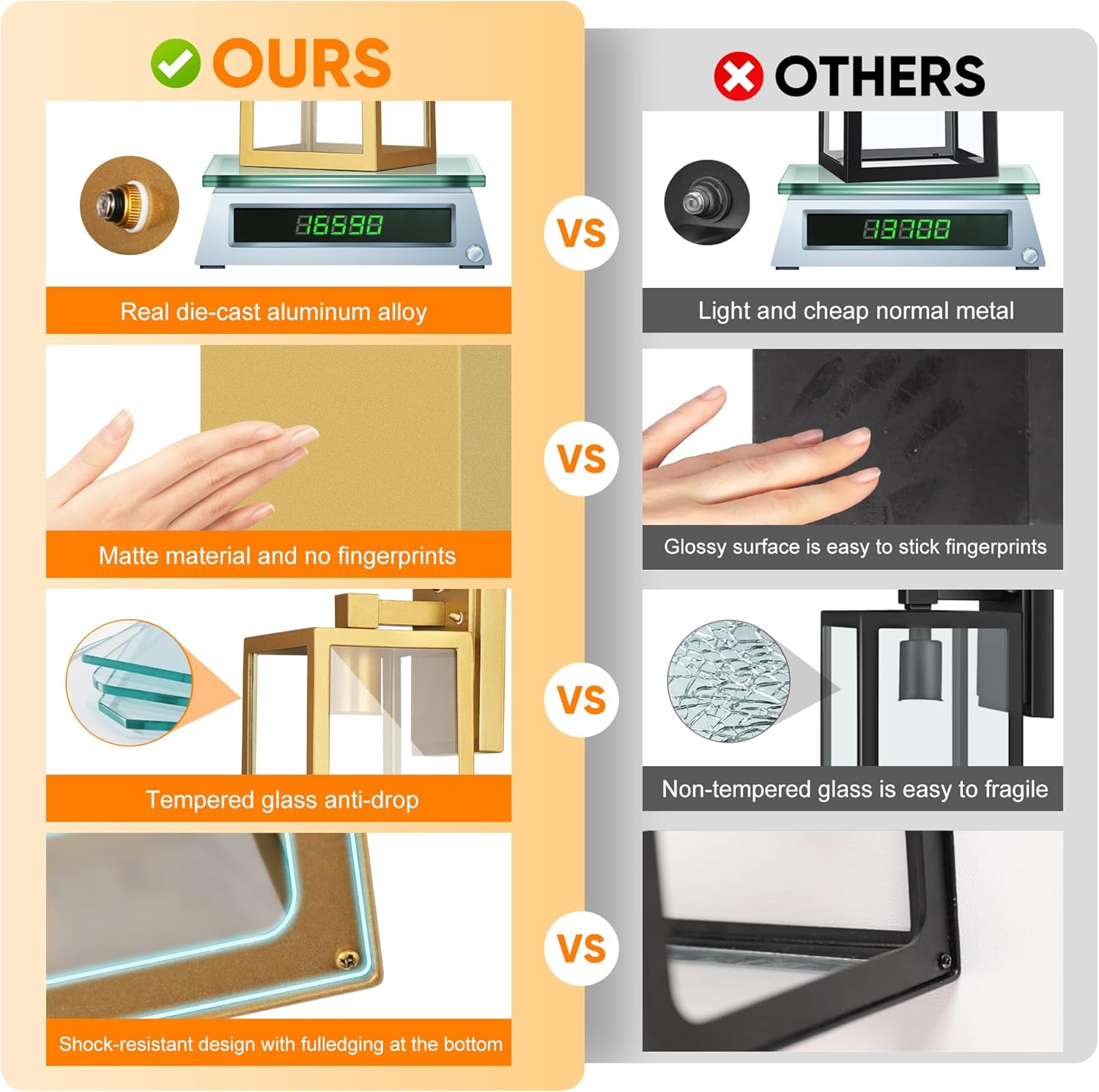 - 【Transparent Tempered Glass】Unlike other fragile and crispy glass panels, our outdoor exterior lights for house take the most advanced high tempered glass, steady enough and highly durable. Besides, with the transparent appearance, it will help the wall light emits more soft and cozy light for your family, add a beautiful atmosphere outside your house.